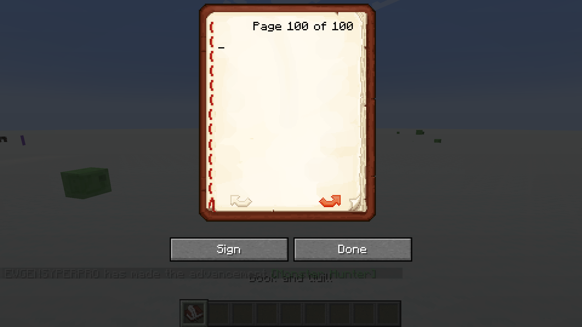 Reach the 100th page (the limit in the book & quill in Java Edition).