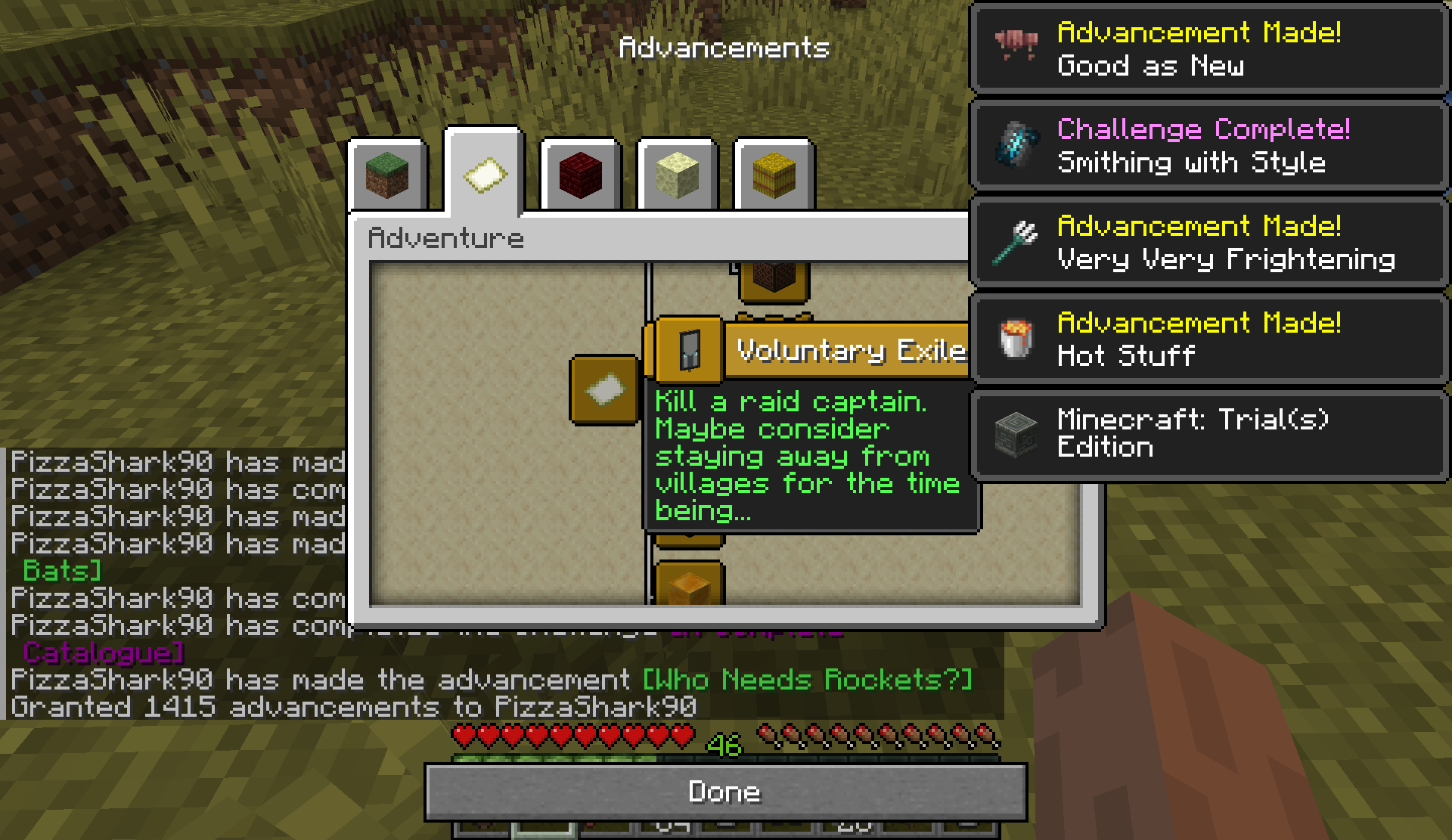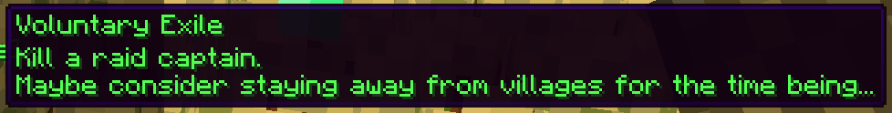 Now that killing a Raid Captain no longer directly gives the Bad Omen status effect, and therefore no need to stay away from villages for a while, the "Voluntary Exile" advancement seems somewhat outdated.