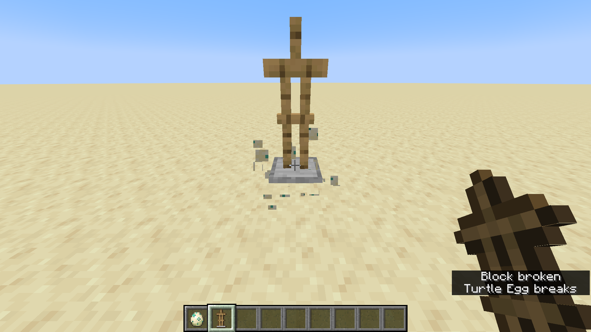Note how the turtle eggs slowly break due to the armor stand being on top.