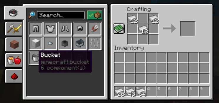 The ingredients would be placed in the correct orientation, and the correct result (+1 bucket) would appear on the right side.