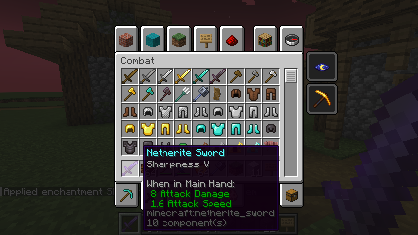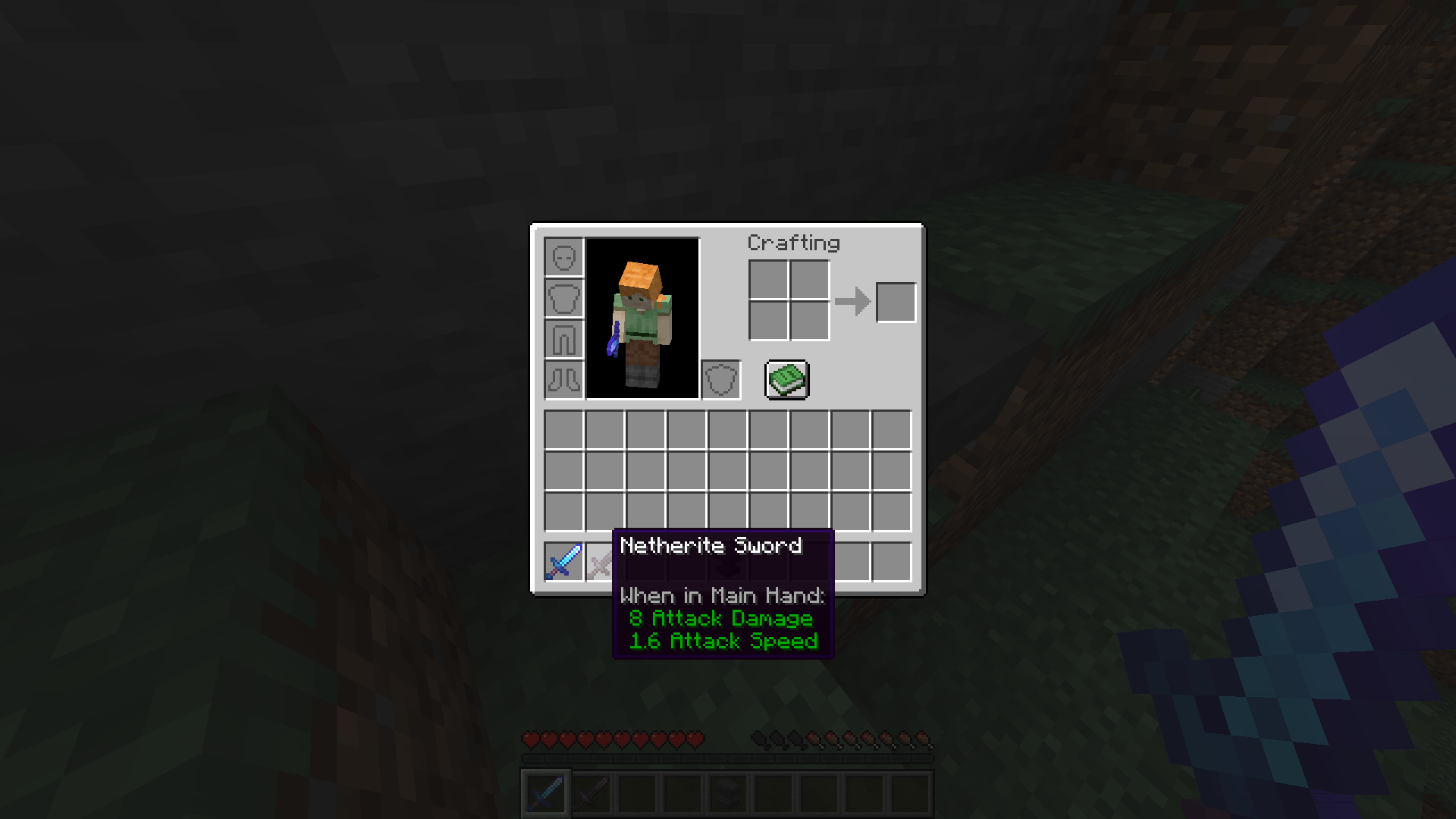 Sharpness-enchanted diamond sword: 10HP left (5 hearts)