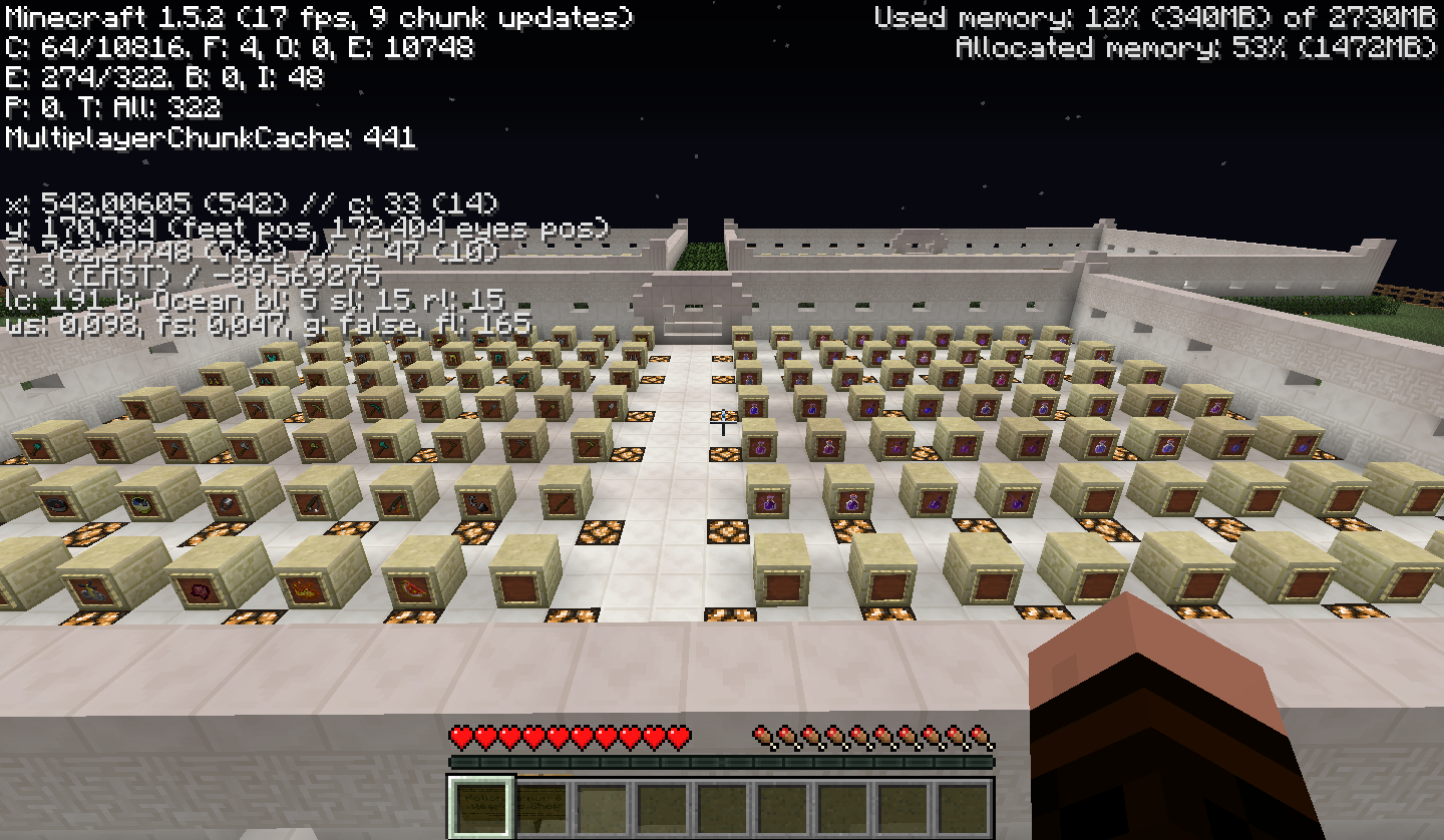 Basically whenever I look to a place with a big amount of Enchanted Items and/or Potions placed in Item Frames, my Frame Rate drops a lot [Screenshot_1]. It's not caused by the big amount of frames since if I'm looking somewhere else with a big amount of Item Frames with or without Items in them, or I'm just simply looking somewhere else, the FPS don't drop [Screenshot_2]. This is not a duplicate of the FPS drop when charging a Bow since whenever I do it it doesn't drop the FPS.