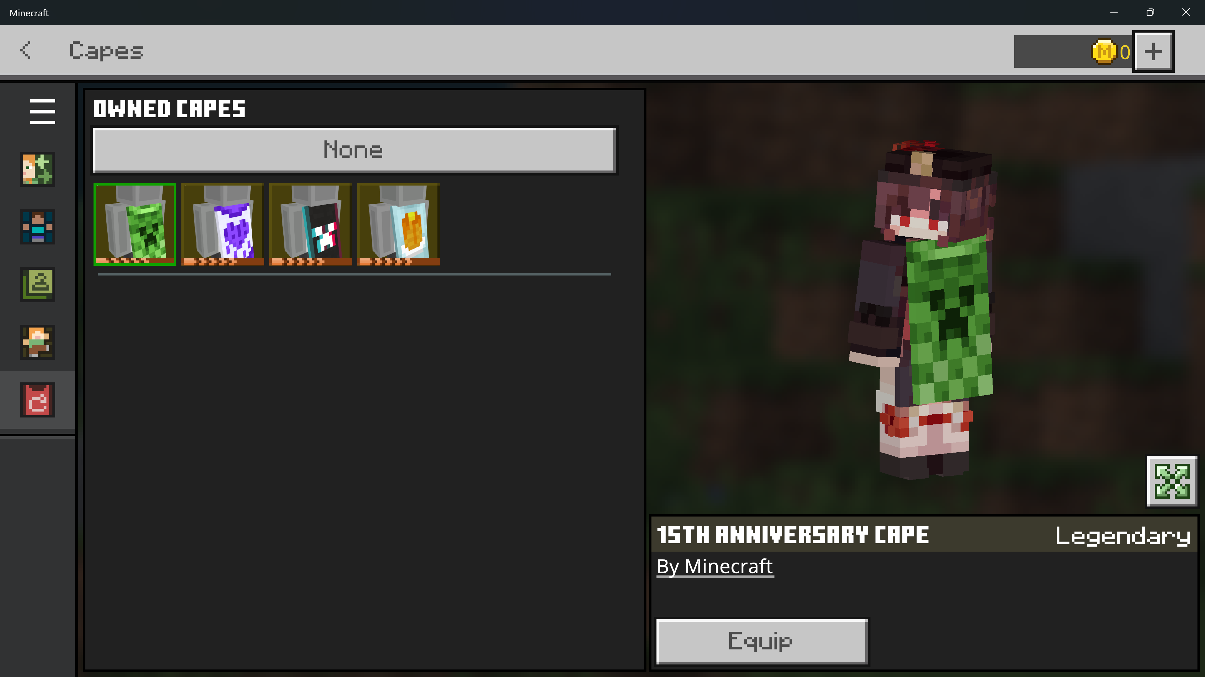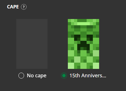 I scrolled down and didn't see a "15th Anniversary Cape" that existed. Similar to Minecraft Launcher. (b.2.24.27-1.7.2)