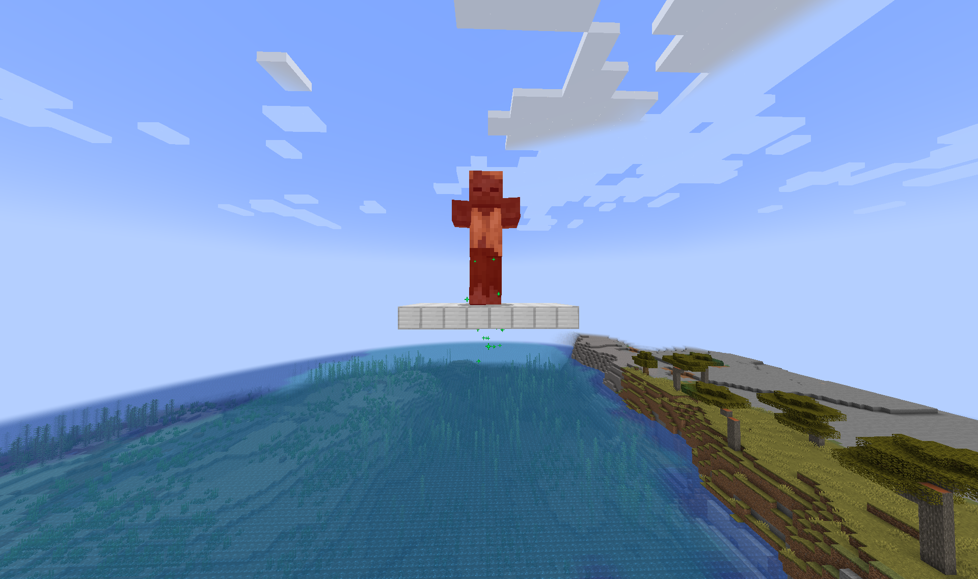 I have also attached a screenshot of the issue. Notice how a lot of particles spawn under the attacked Husk, but none spawn near its head (or generally in the upper part of its hitbox, as I have previously mentioned), but some spawn below the Iron Block floor. The Husk had had its scale attribute set to 3 for showcase purposes, but the issue also happens if the scale is set to 1 (default). I set my entity_interaction_range attribute to 100 so that I can attack it from a distance to make the particles as visible as possible