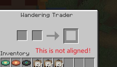 When the mouse moves over the slot, you can find the misalignment of the slot by observing the highlighted part, and then deduce that the slot position of "villager.png" is drawn incorrectly based on the slot position of "crafting_table.png". Fixing this issue will not affect other texture pack compatibility issues, as the slot size is larger than normal slots