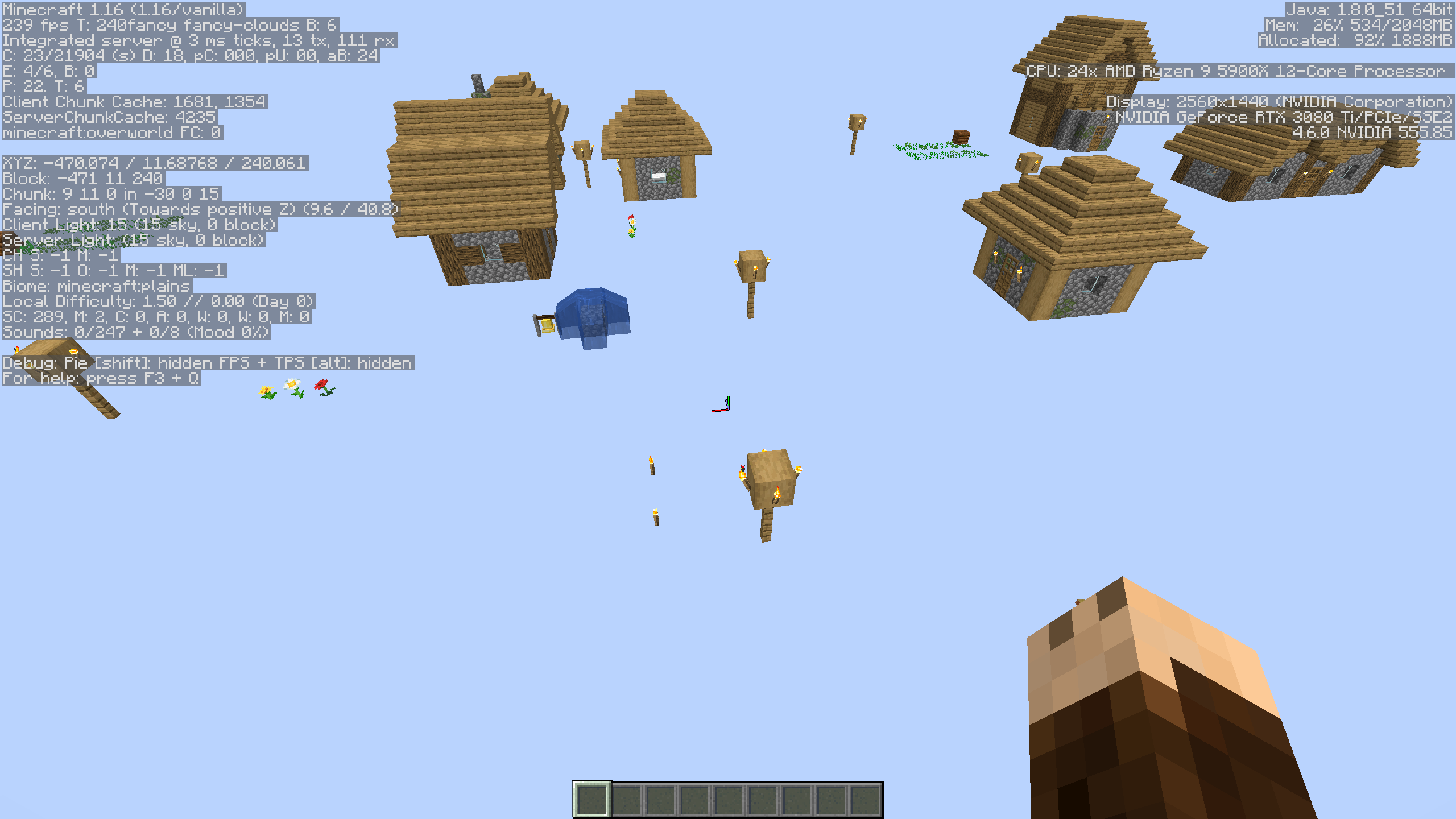 If you create a super flat world and remove all the layers so you end up with a 100% void world, then villages can still generate in the air. Crops, flowers, houses, everything float, and the villages fall into the void.