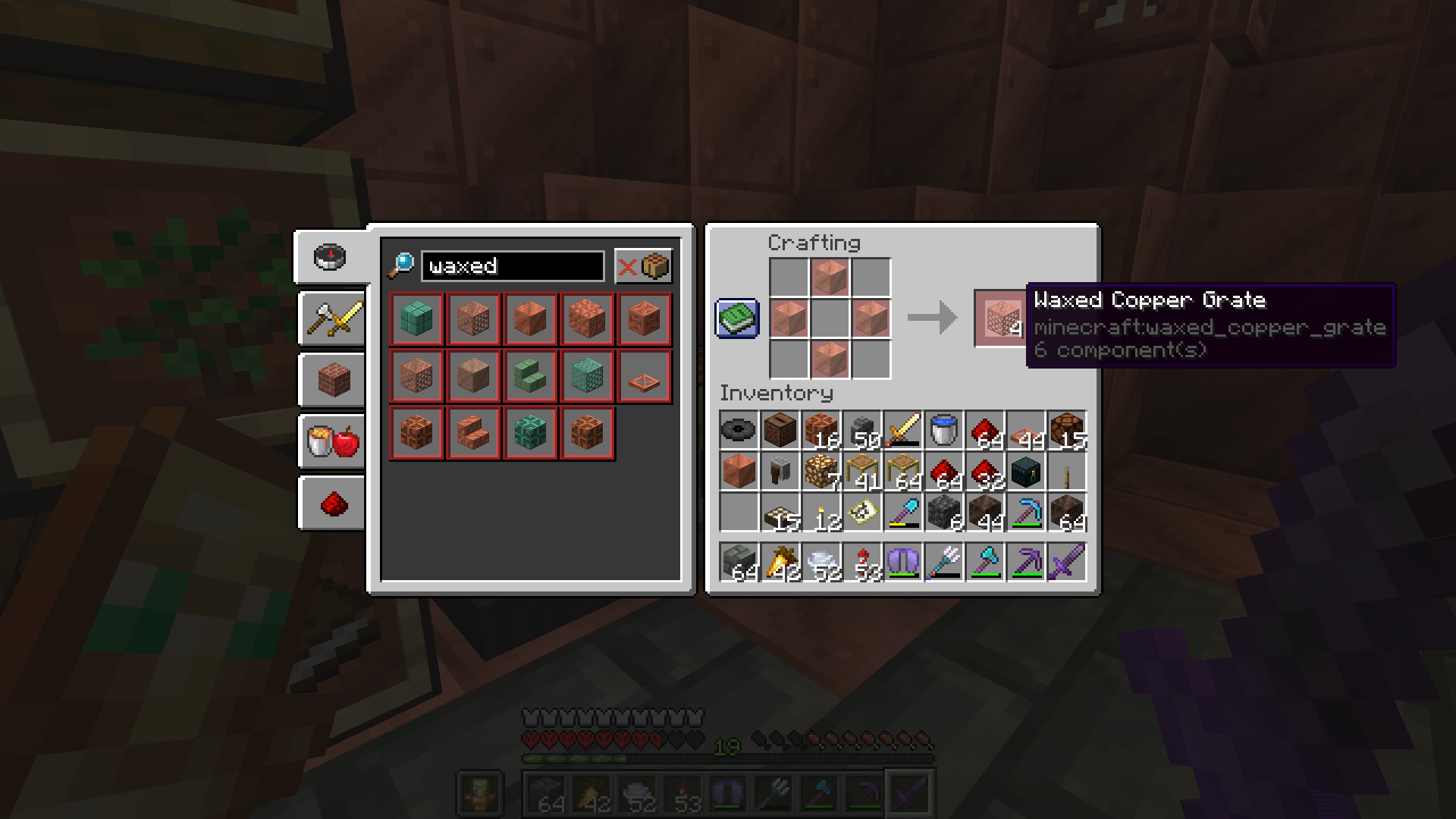 There are 2 waxed copper grate recipes in the recipe book, and one is crafted like a normal copper grate, the other is a copper grate and a honeycomb.