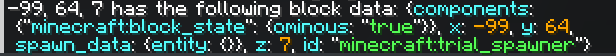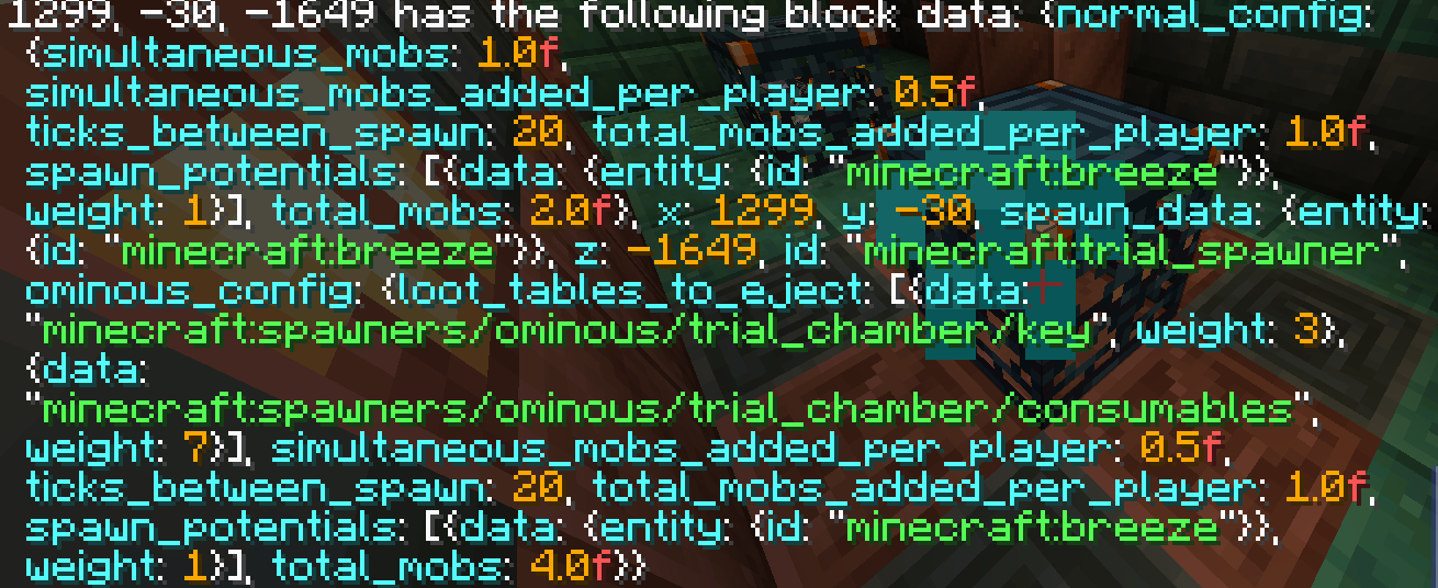 (Included Screenshots are data for a player-placed trials spawner and a naturally generating one)