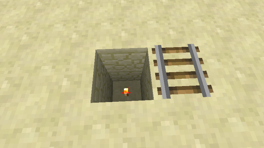 5. Dig 3 blocks down on the left side of the curved rail