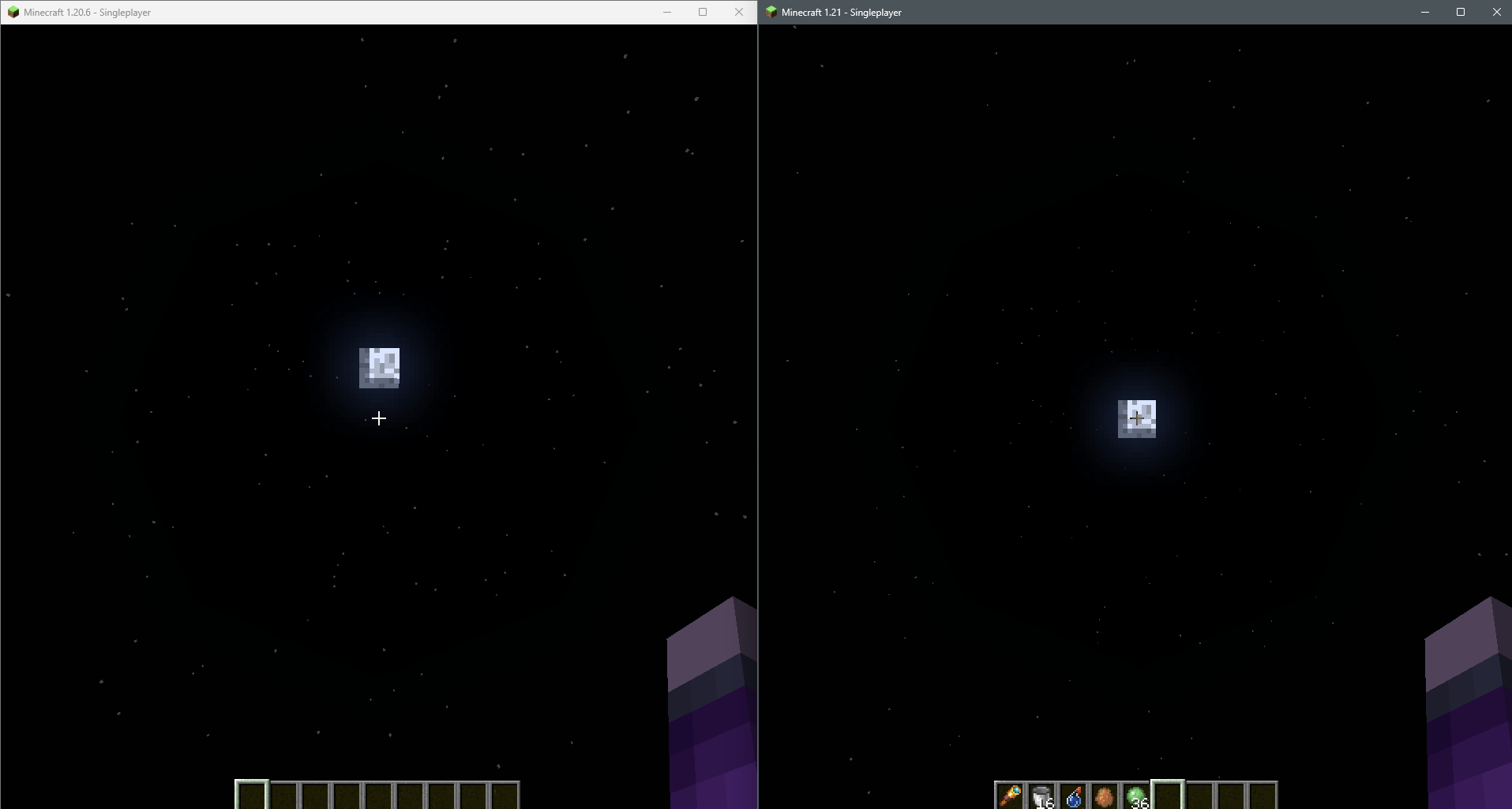 Load 2 instances of minecraft (1.20.4 and 1.21) and put them side to side