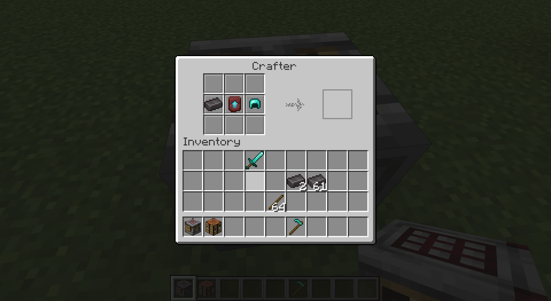 Bug description:Netherite armor cannot be crafted using Crafter,Netherite tools cannot be crafted with crafter using stick+netherite combo