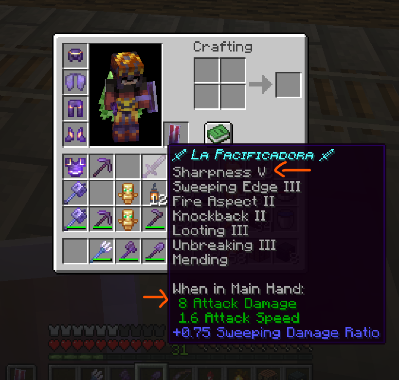 Note that this is visual; Sharpness still increases the damage of weapons.