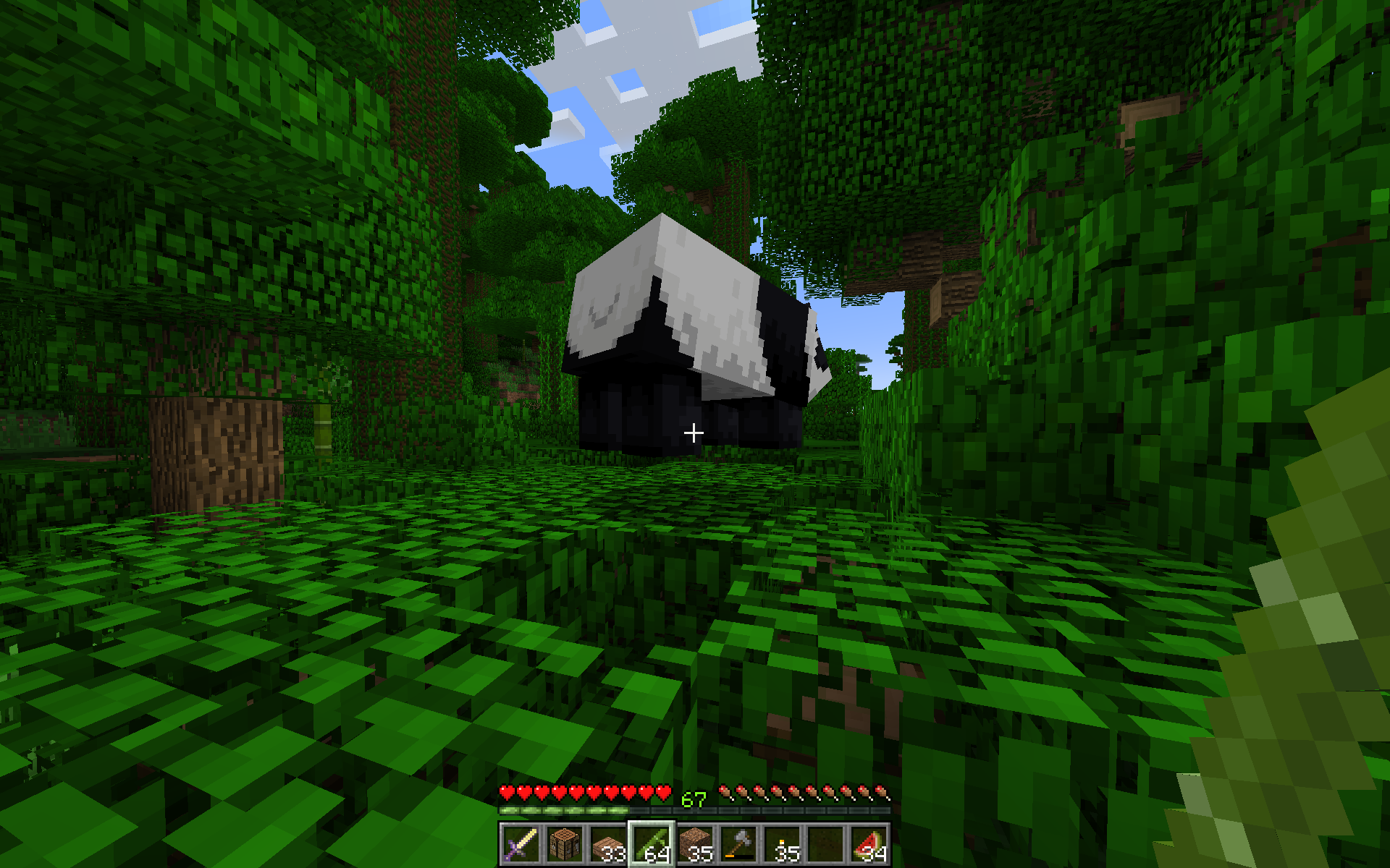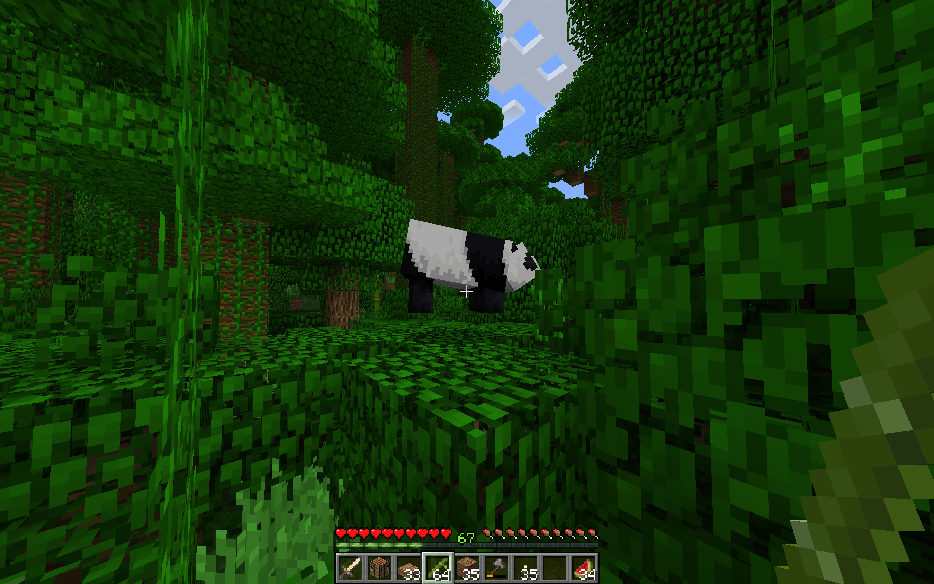 Panda suddenly stopped when following. Even its bounding box disappeared, I could normally walk through that panda. She didn´t move, stayed at place at jungle biome. No sounds except my steps was heared. I was normally at survival, no change of game mode.