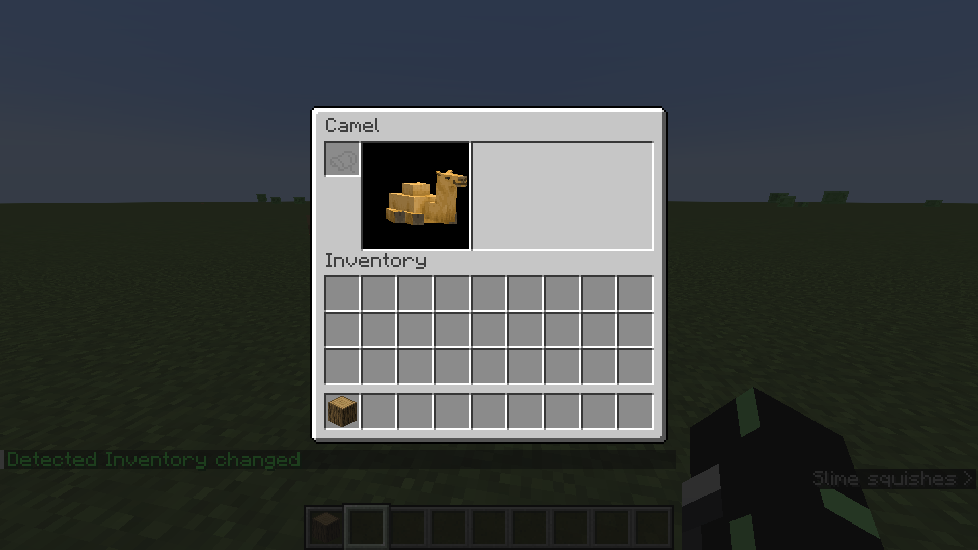 Summon a camel and while shifting, right-click the camel to open its inventory.