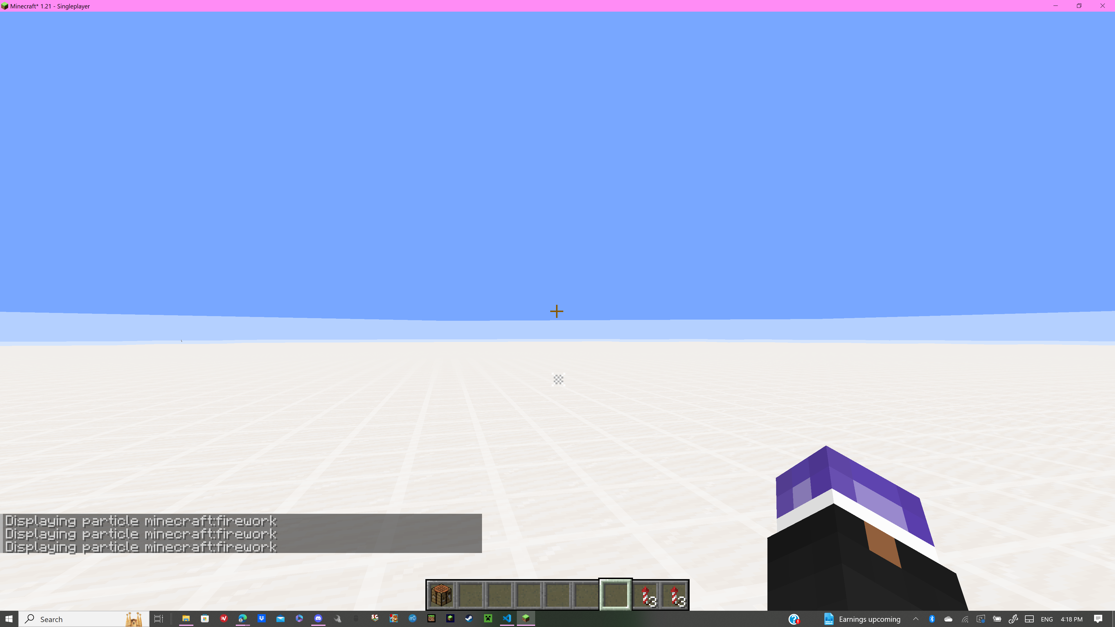 The /particle command can be used to specify the color of created dust particles, the block and state from block particles, as well as many other parameters for other particle types, yet the minecraft:flash and minecraft:firework particles do not support a color field even though colored forms of these particles can be created by game. The included screenshots are from a modded version of minecraft, but only client-side mods are being used, and this does not affect the lack of these fields in the /particle command. The screenshots show the particles as created by the /particle command and what they look like when created by red and white fireworks, displaying the range of colors the game offers.