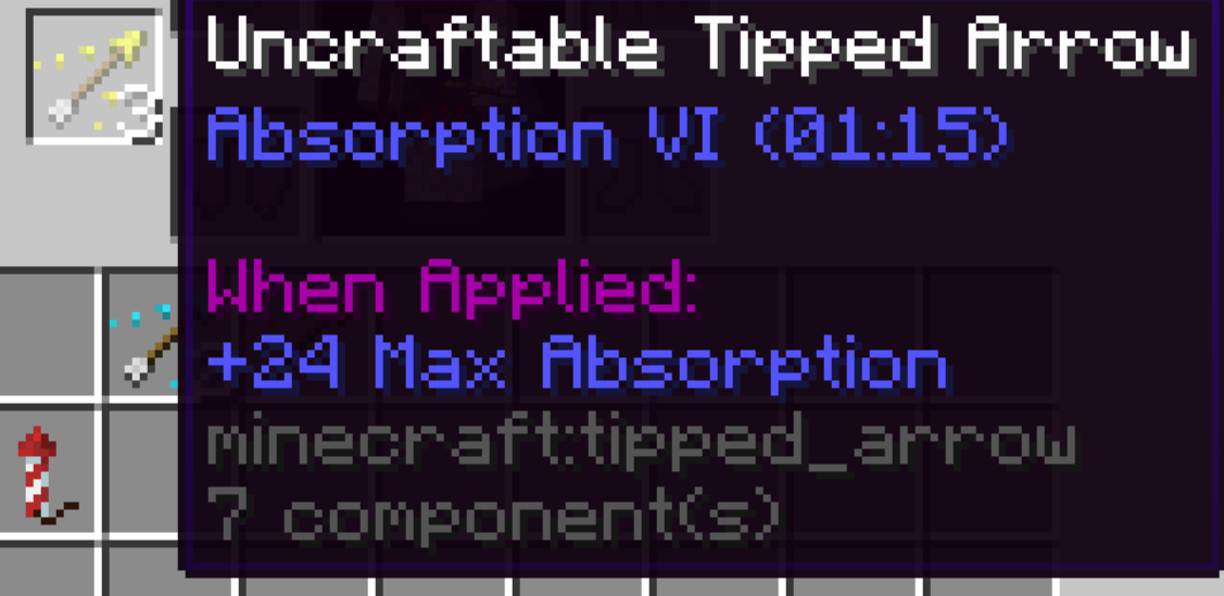 However, this post has nothing to do with the texture of the tipped arrow entity itself. What tipped arrow entities do have are particle effects that match their potion, and in the past, you could assign them custom-colored potion effects, in the same way that you do with the particle effects of a regular splash potion.