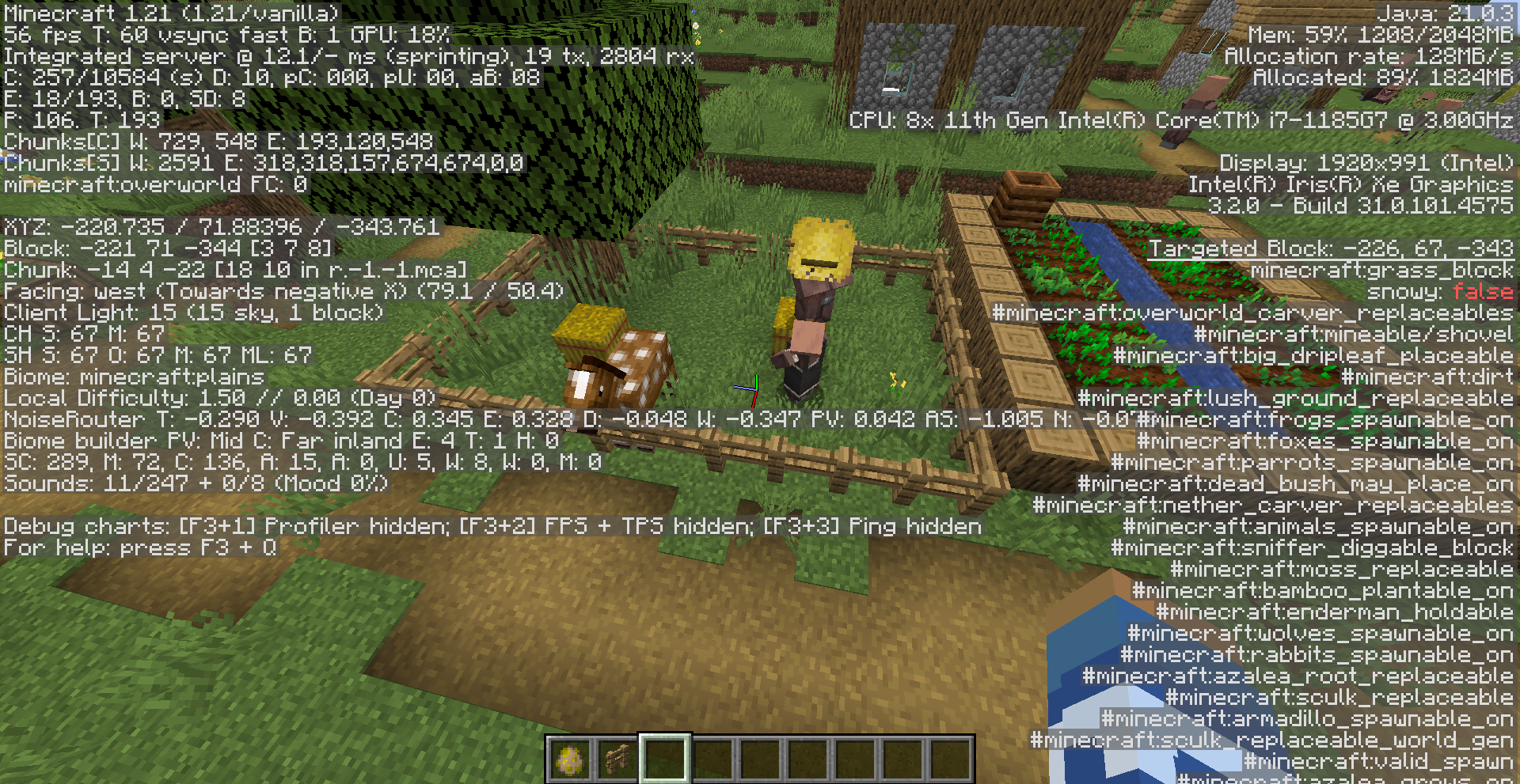 A fenced in area is placed right next to a farm. Villagers jump up on the oak logs of the farm and then walk over the fence next to it falling into the fenced-in area trapping themselves. The fence should have 1 space of air next to it on both sides to prevent villagers or any other mob from crossing it. Or the fence should have the same properties as rails that prevents mobs from walking on them.
