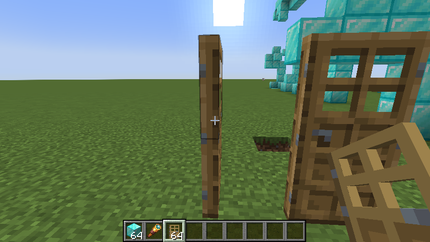 For example, when the door hinge is on the left, take the oak door as an example (the hinge part of the oak door is more obvious), in the closed state, the gray pixels are displayed on the right and the dark brown pixels are displayed on the left, in the open state, the gray pixels are displayed on the left and the dark brown pixels are displayed on the right. This bug affects all doors,