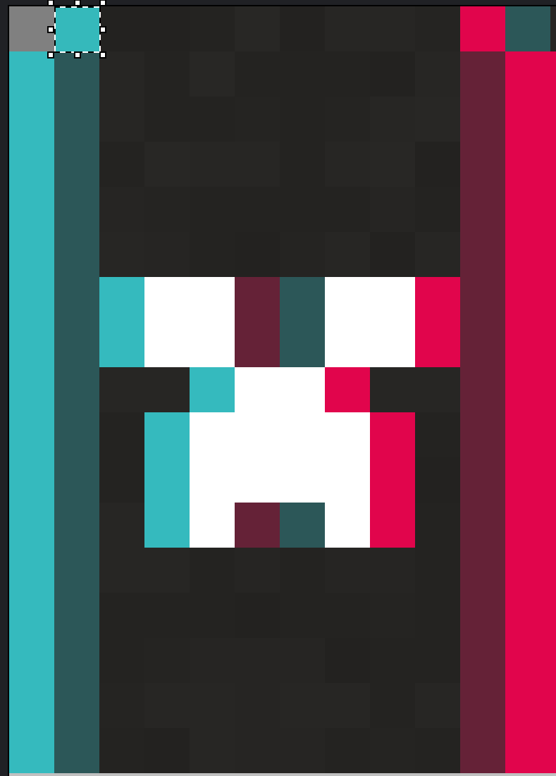 There is a blue pixel on the top of the cape which does not match the blue used everywhere else on the texture. This is unlike the red color, which uses the same shade everywhere on the texture.