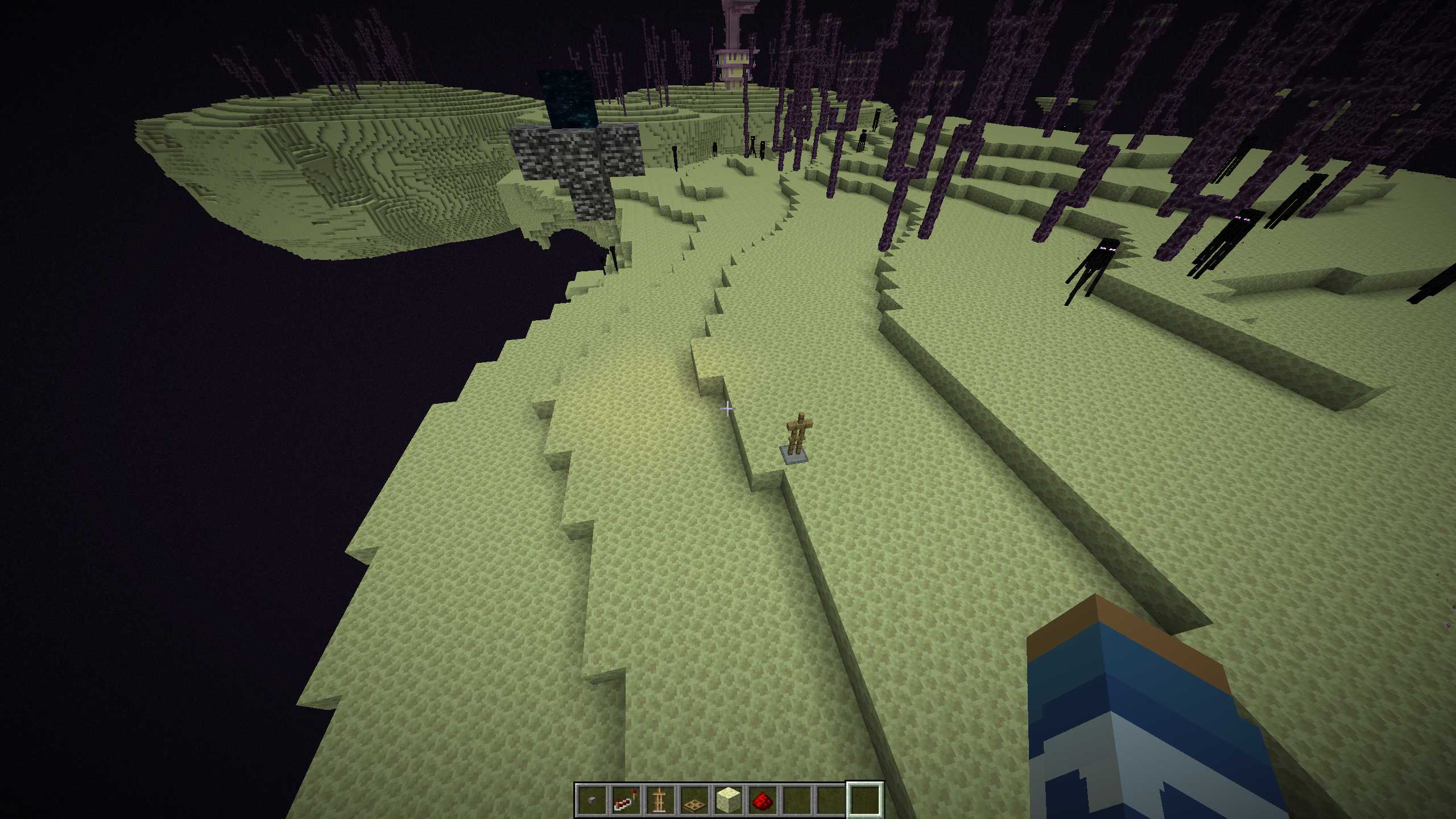 (can artificially create one if needed)Have player at the main island send an armor stand through the gateway