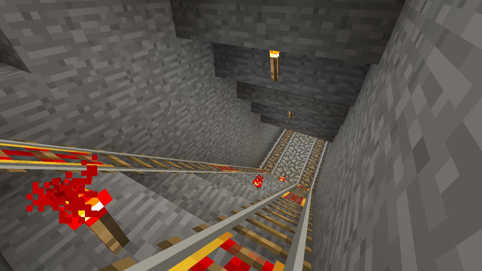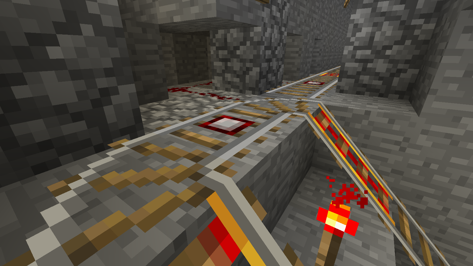 But if I stay near the lever, the remote minecart doesn't start. I need to follow the track and get closer to allow the minecart to start.