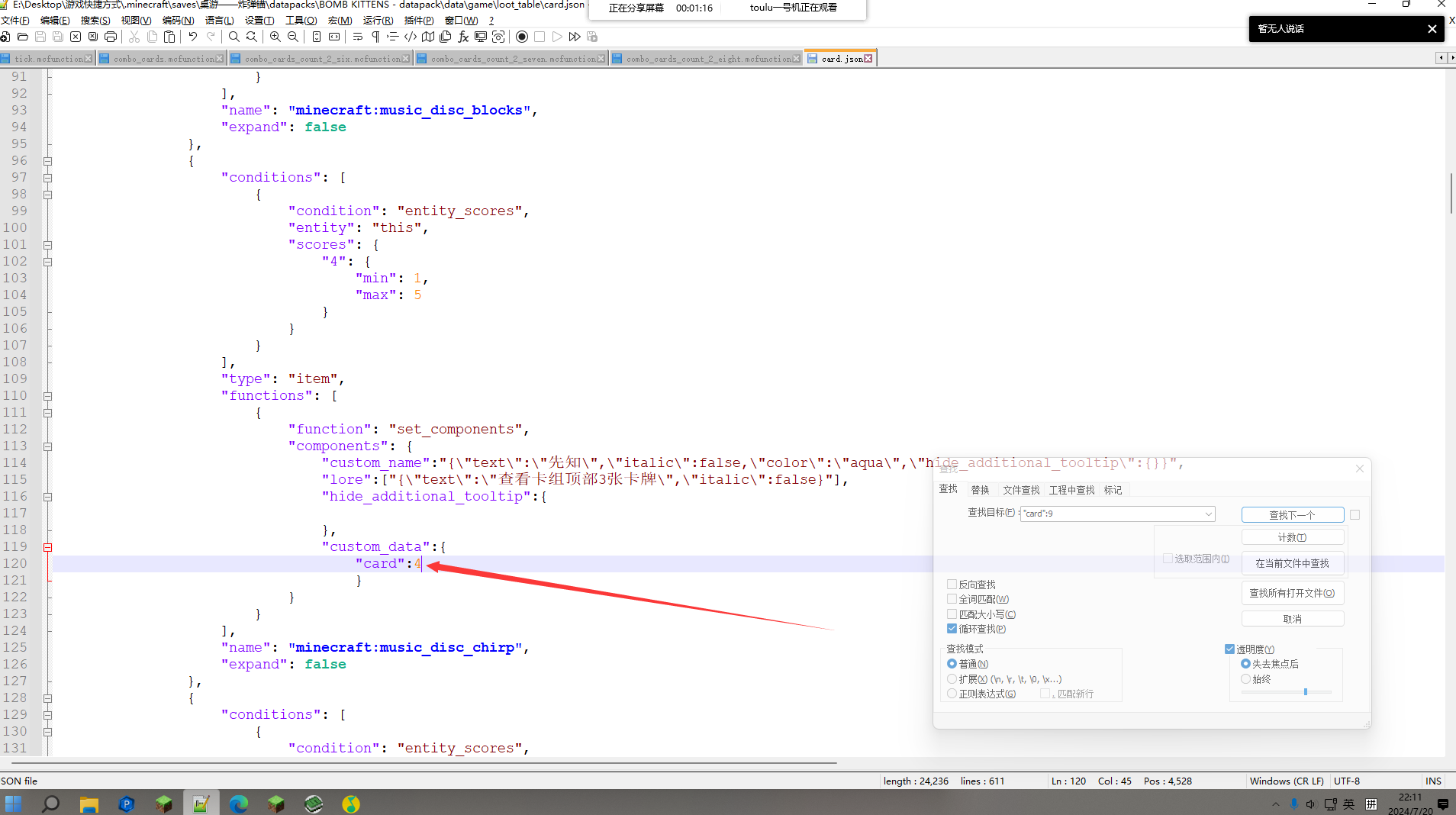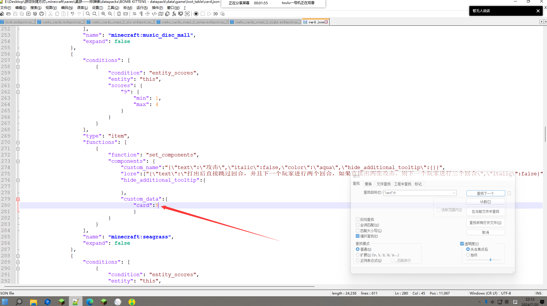 In the item modifier of the loot table, the card on the top is the same as the card on the bottom, but the data type of the card's data is different when the data is retrieved (as shown in the figure)As for the details, please see attachments