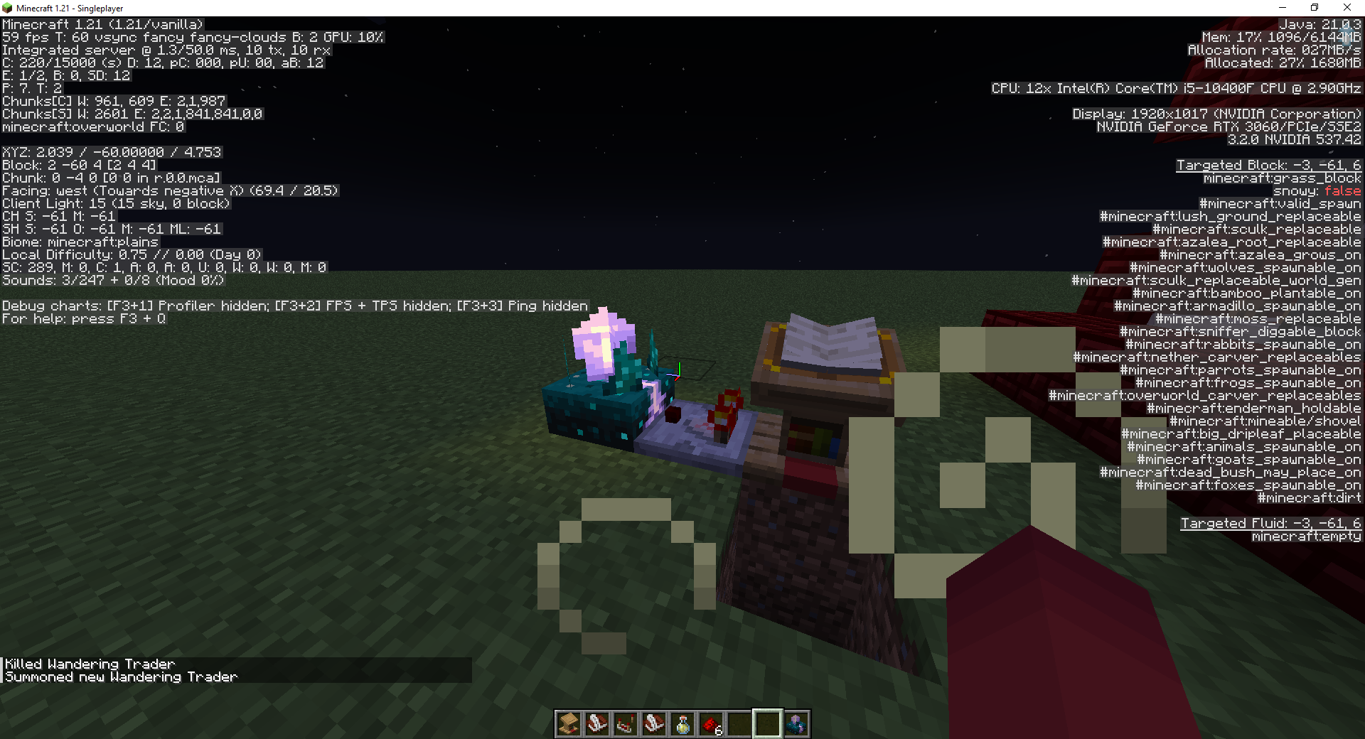 2) Wandering Trader Invisibility Postion is detected when calibrated (as intended, of course)