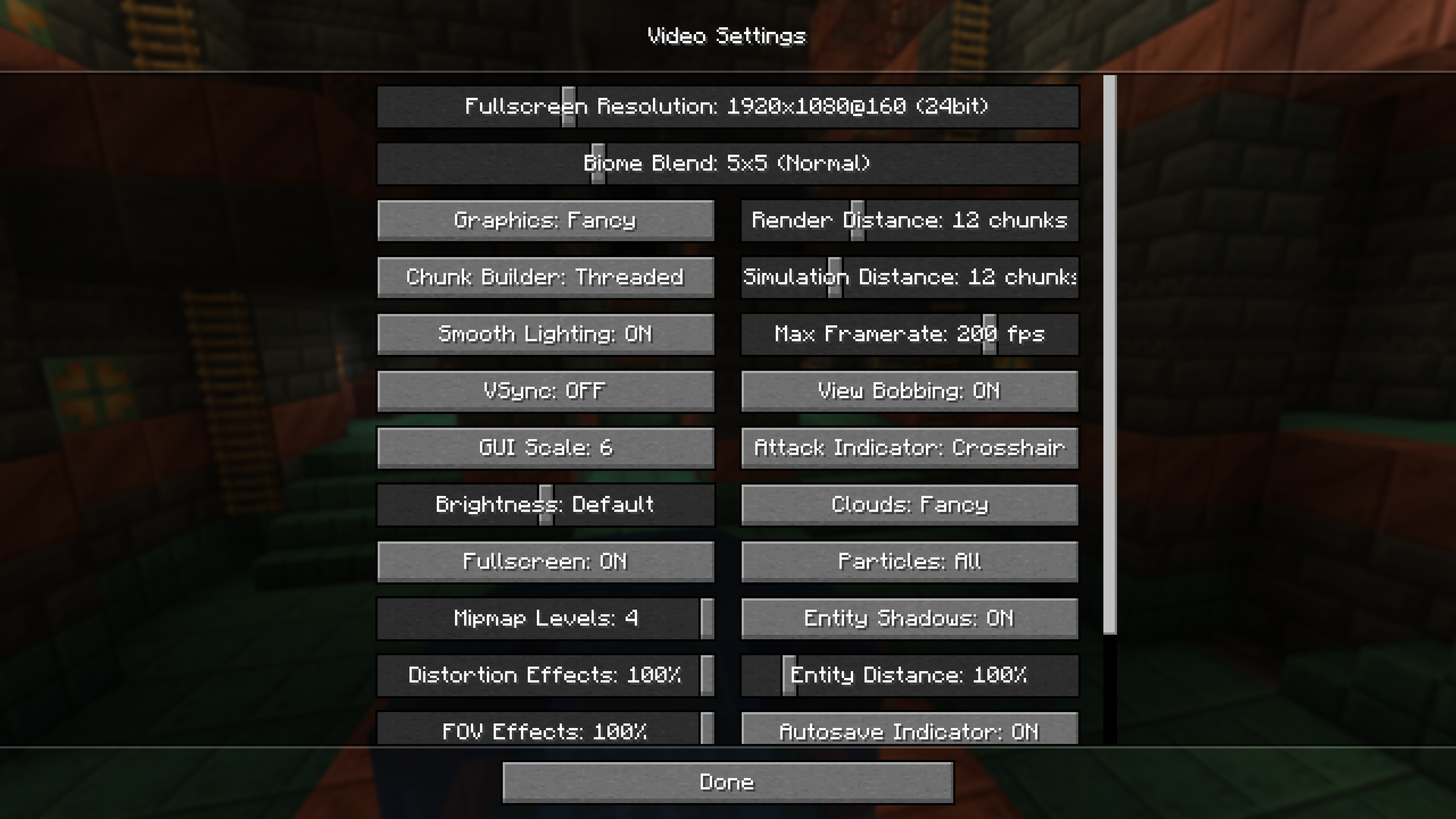 Resolution does not change regardless of whether I press escape, click the done button, or even restart the game. Additionally, buttons before restarting the game act like they're being rendered in the lower resolution, causing them to misalign what's actually being viewed.