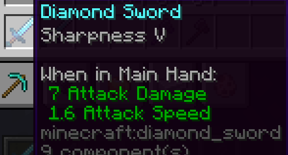 When you add sharpness to a sword/axe it should show the extra damage, but it stays the same. a regular diamond sword deals 7 damage but with sharpness, it should show 11 damage, not 7. this bug is visual and does not affect the damage it just shows the wrong damage points
