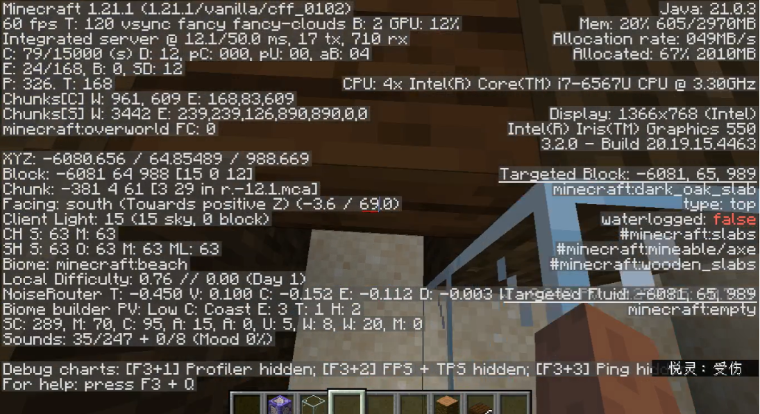 Your F3 debug menu indicates that your game is modified (it usually doesn't show your username in the first line). Does this happen in a 100% vanilla environment?