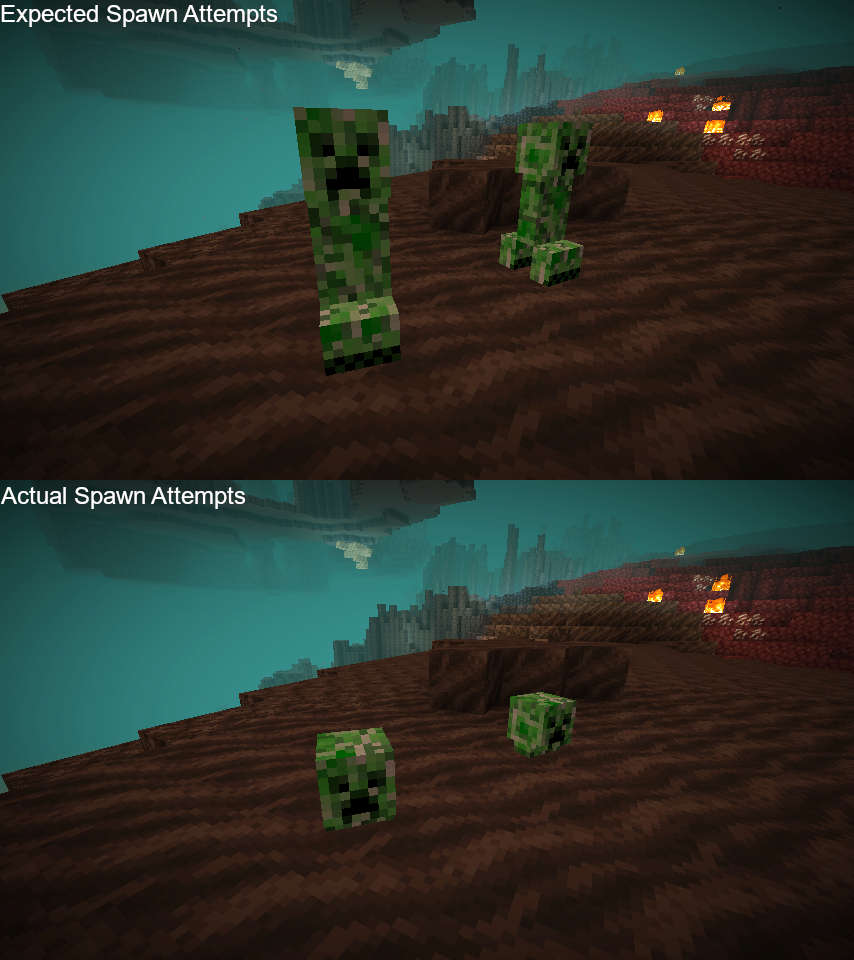 It looks like all natural mobs attempt to spawn lower than they should. Attempts that should be successful instead end up *1 block deep inside the ground* causing the mob's hitbox to invariably collide with solid blocks.
