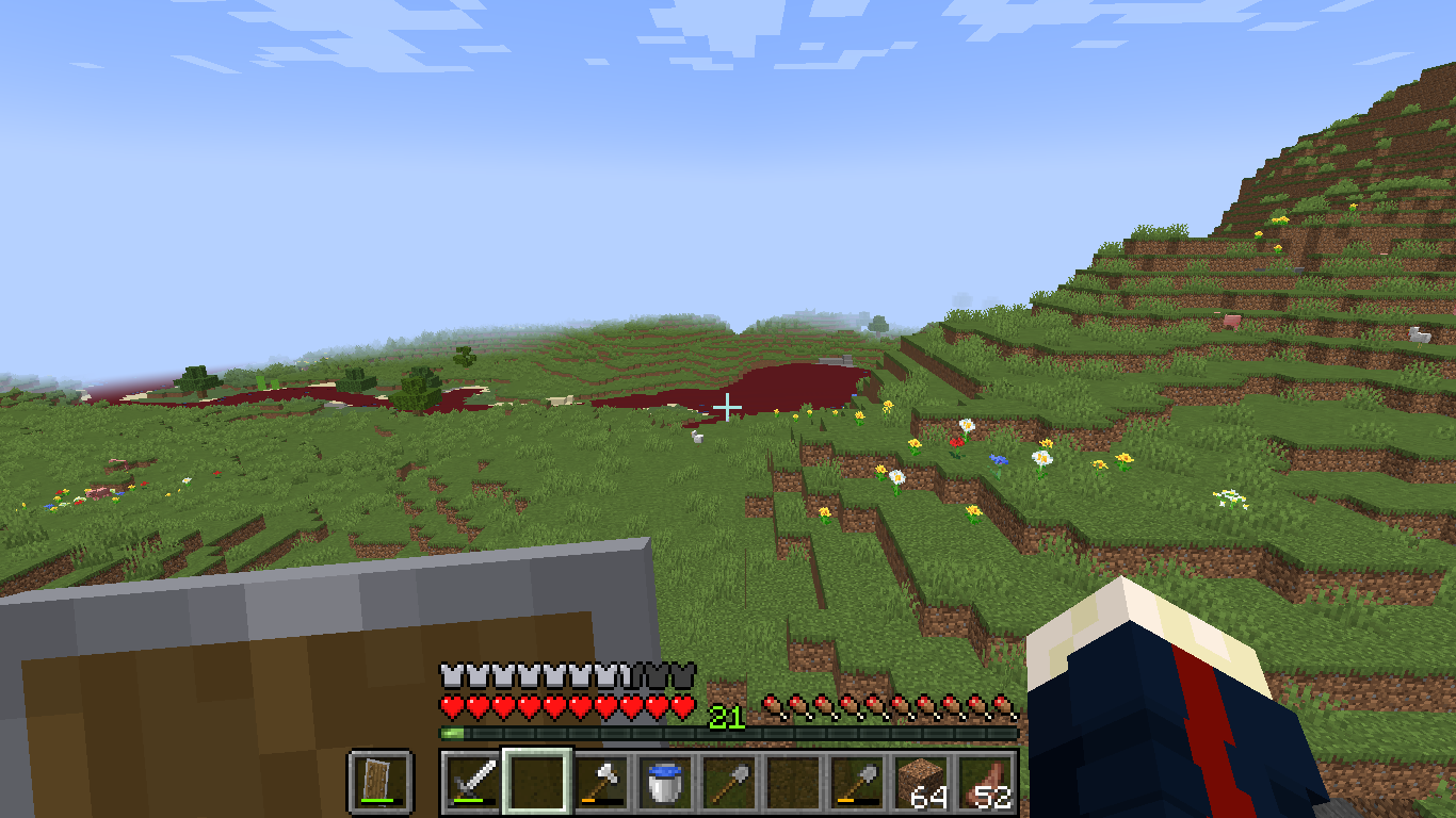 Some time ago I played in the world created by me on a light mod build (Mostly there were visual or minor changes ie JEI NEA, etc., but stood quite famous mod From The Fog). I knew all the FTF lists perfectly well - what the mod changes and what it doesn't. Entering the world in the morning I noticed that all water blocks (sources) were replaced with blocks of purple wood. The entire river and nearby caves were dotted with these. When trying to break these blocks they would break at the same rate as the wood ( and would break faster with an axe ). When breaking a block it would stay in place, and when you pressed on it ( exactly after breaking it ) it would be replaced with the familiar water source. When trying to fall on a block I would get a fall death notification. At that time I had not built the portal to Nezer yet.