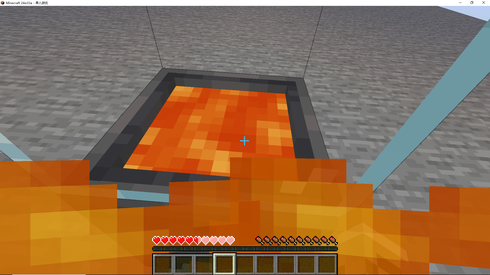 Normally, a cauldron with magma in it will only damage the player standing inside it, but in 24w33a getting close to it will damage the player