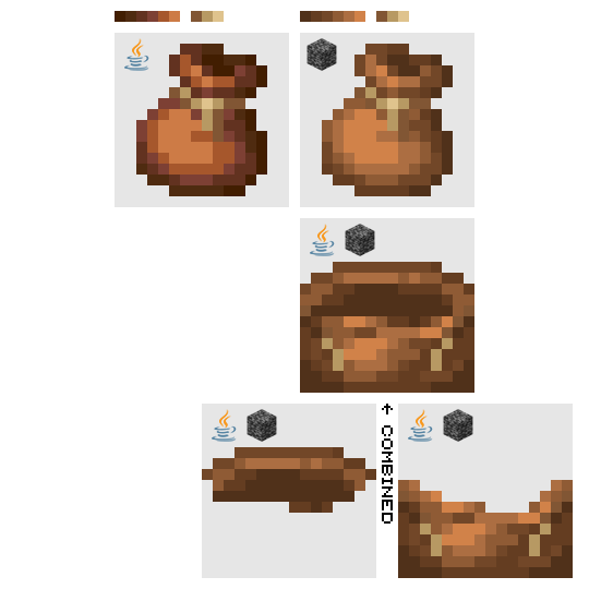 use a 'newer' duller palette (which was also used for the closed bundle in Minecraft: Bedrock Edition until 1.21.40.23, included in the showcase image), while the closed bundle texture (textures/item/bundle.png) uses the 'older' darker color palette.