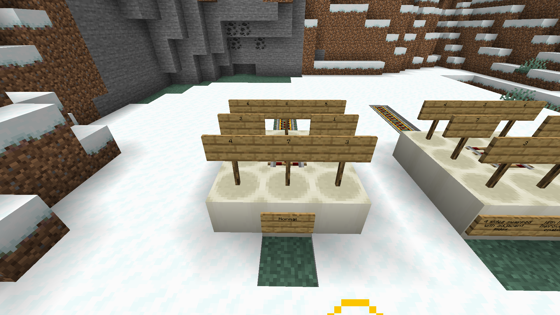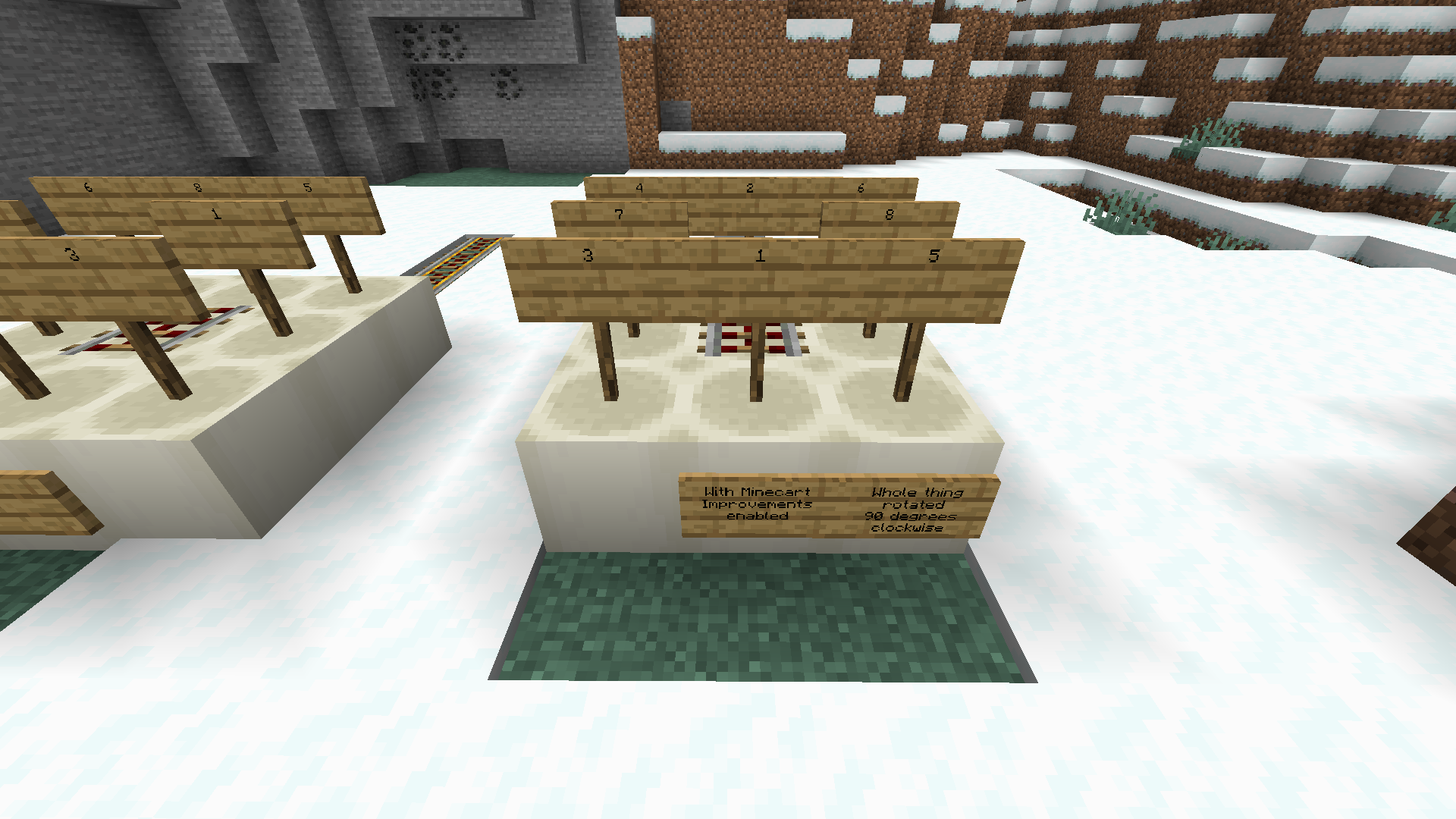 Minecarts eject mobs incorrectly. The order of adjacent blocks is rotated 90 degrees clockwise from normal when the minecart travels east or south (rear, front, left rear, left front, right rear, right front, left, right, relative to direction of travel). When travelling north or west, the minecart ejection check order is rotated 90 degrees counterclockwise from normal (front, rear, right front, right rear, left front, left rear, right, left, relative to direction of travel).