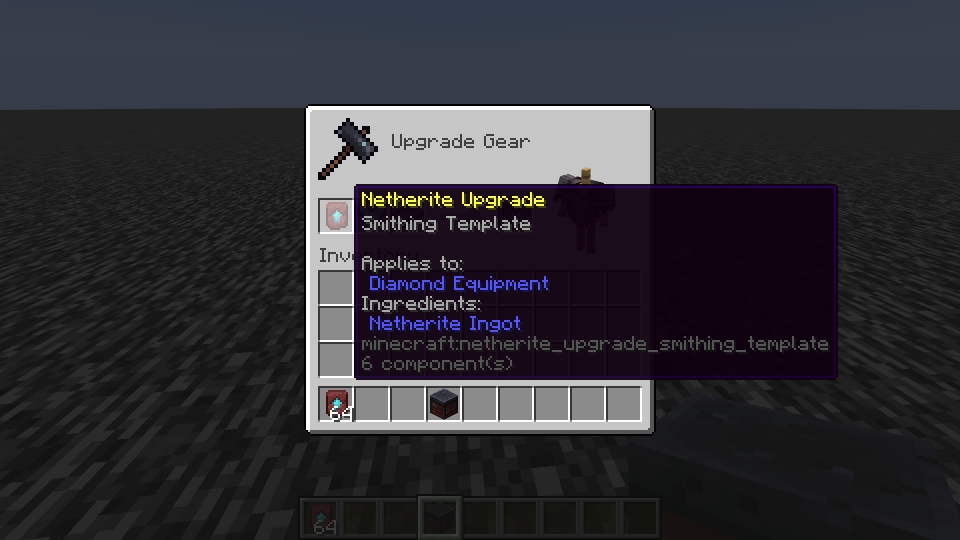 The resulting item would inherit the rarity of the template or material. The netherite gear would have uncommon rarity.