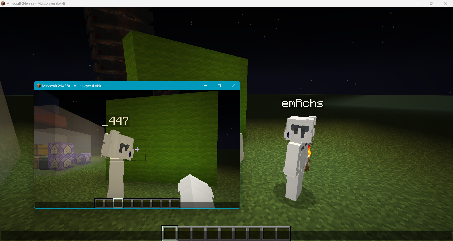 Start a multiplayer server or a LAN world and join it with two accounts or have another player join with you.