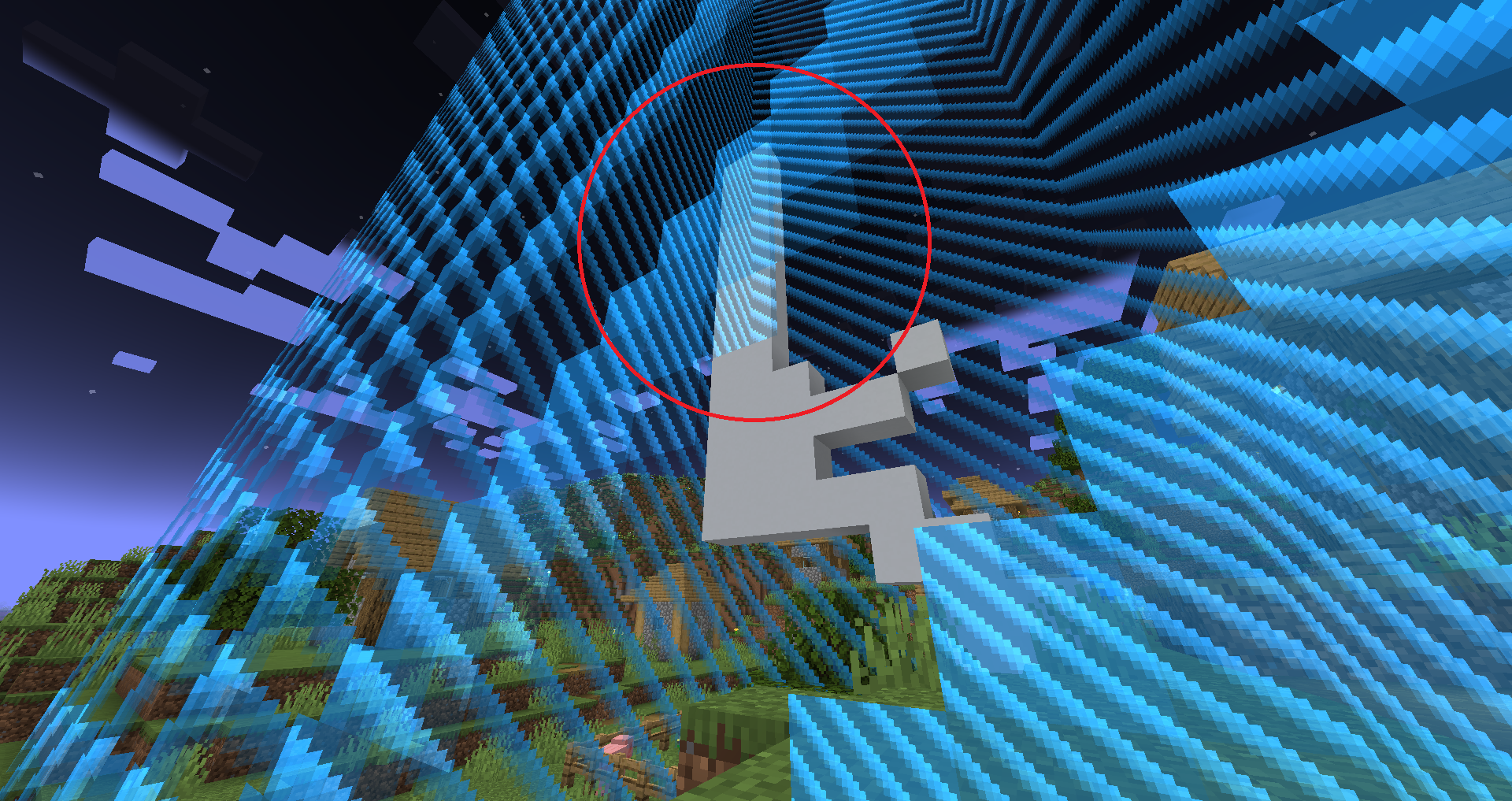 The world border is displayed even if there are opaque blocks in the middle, in the corners the effect is more evident.