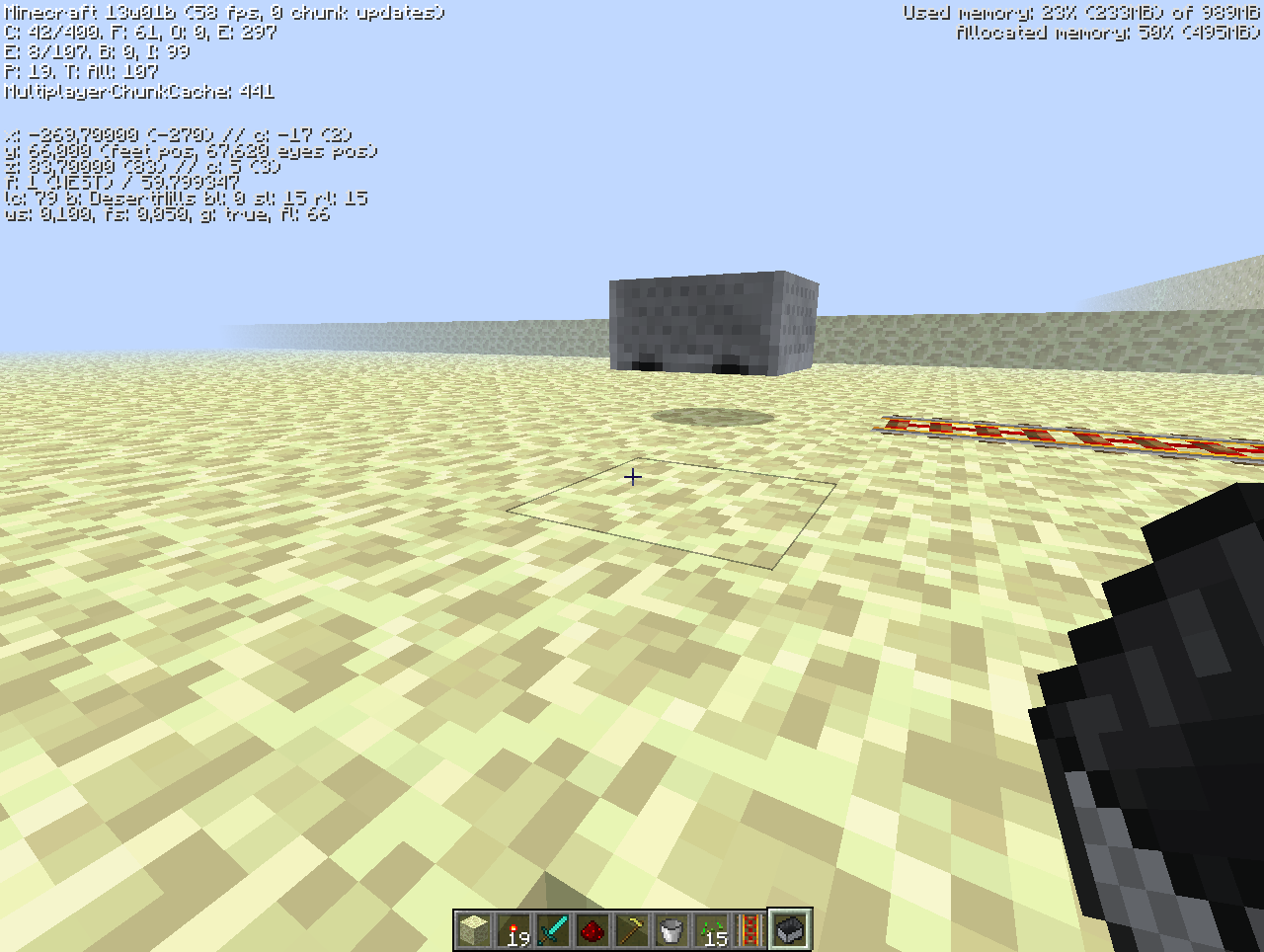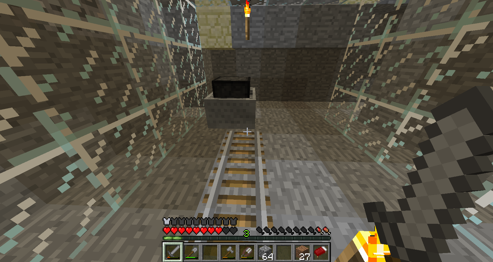 I made this world back in beta and still play it. For some reason now, every time I log into this world, my previously placed minecarts are floating above their tracks. The one in the screenshot is actually a minecart and furnace.