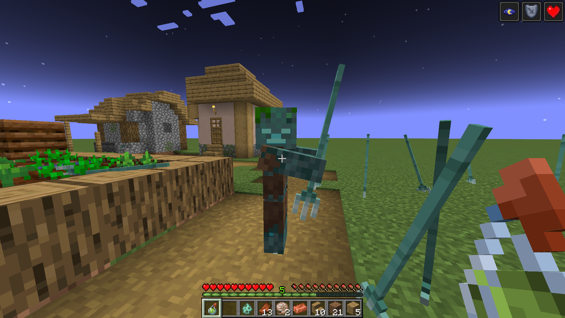 Drowned holds trident upside down when it is provoked (see screenshot).