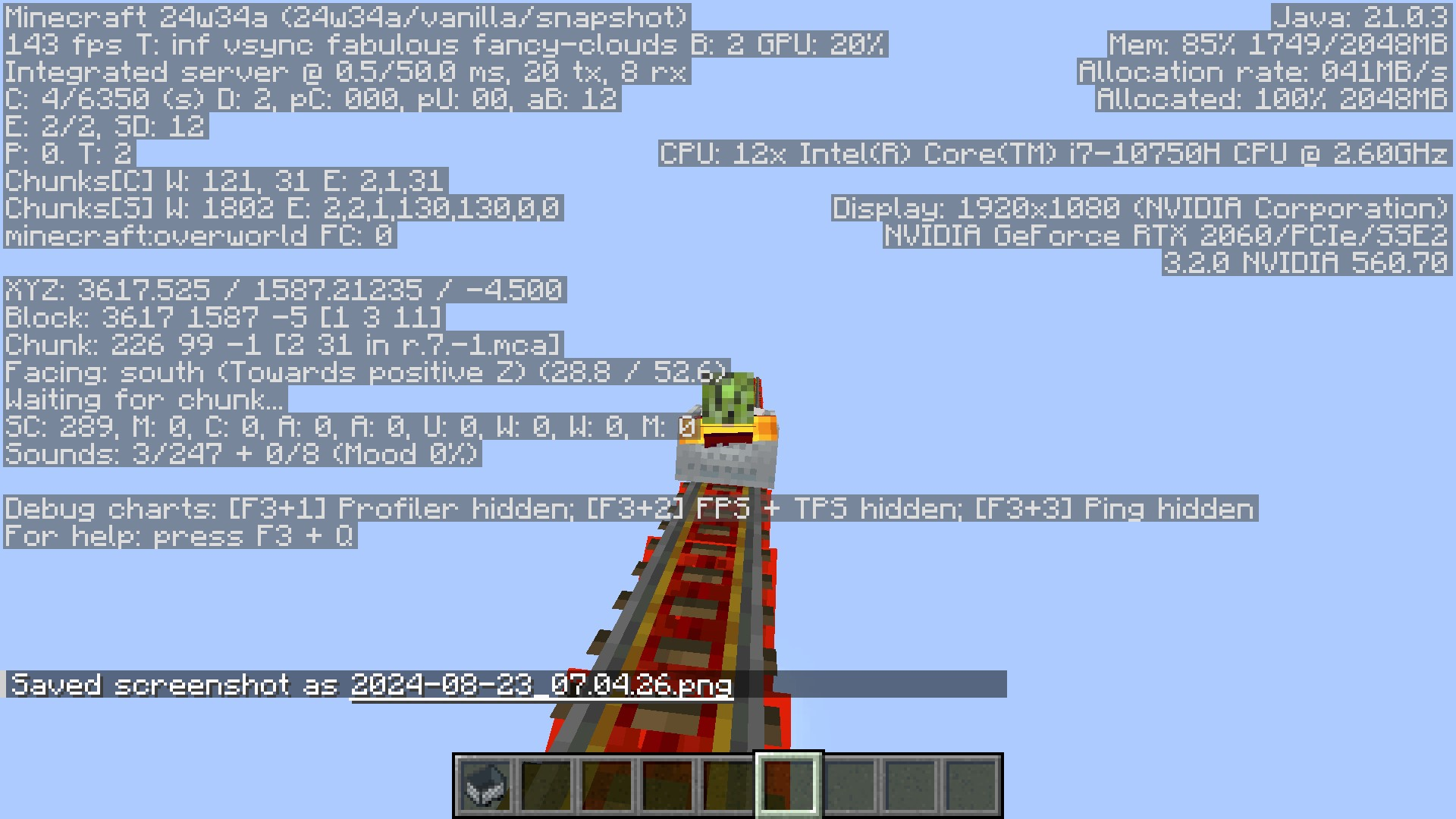 Note: The reproduction world has a datapack to give it a 4000 block build height limit but that's just because that's the most efficient way I could make a reproduction setup.