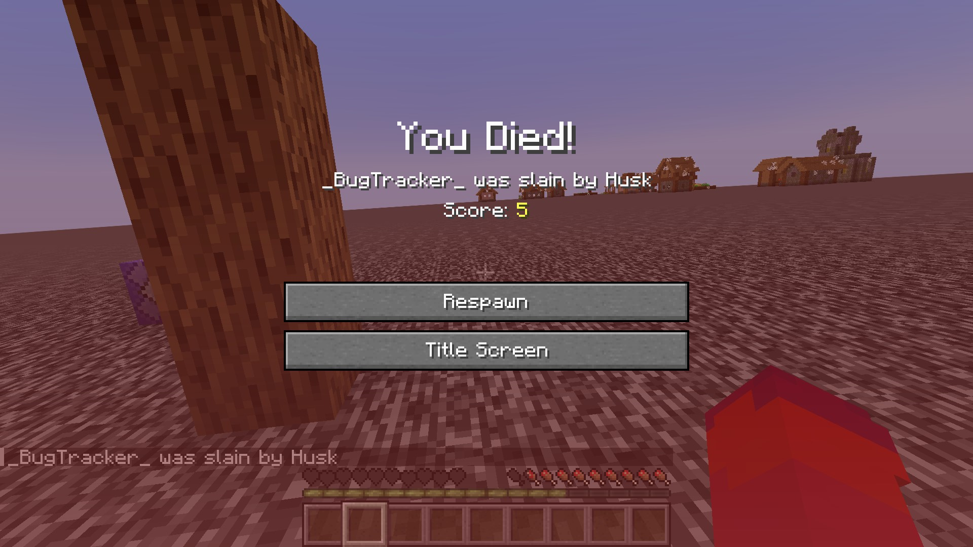 The death message that is displayed is "<player> was smashed by Husk".