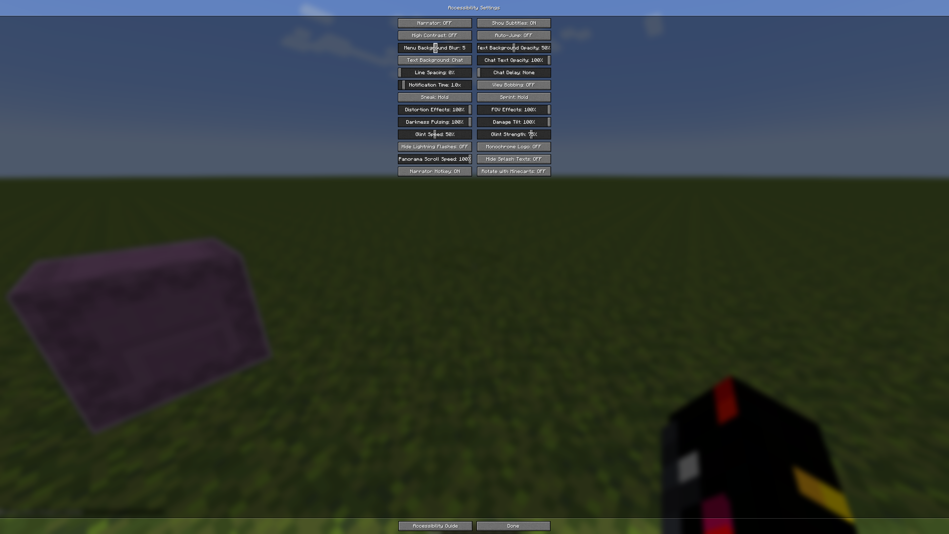 When opening the pause menu with background blur enabled, the glowing outline of entities becomes black. This does not occur if Menu Background Blur is set to Off in the Accessibility Settings.