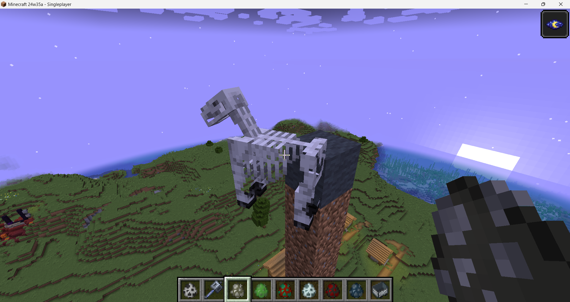 when i spawned a skeleton horse and a sniffer on the side of the block, rather than falling to the ground, it somehow stick on to the side on the block