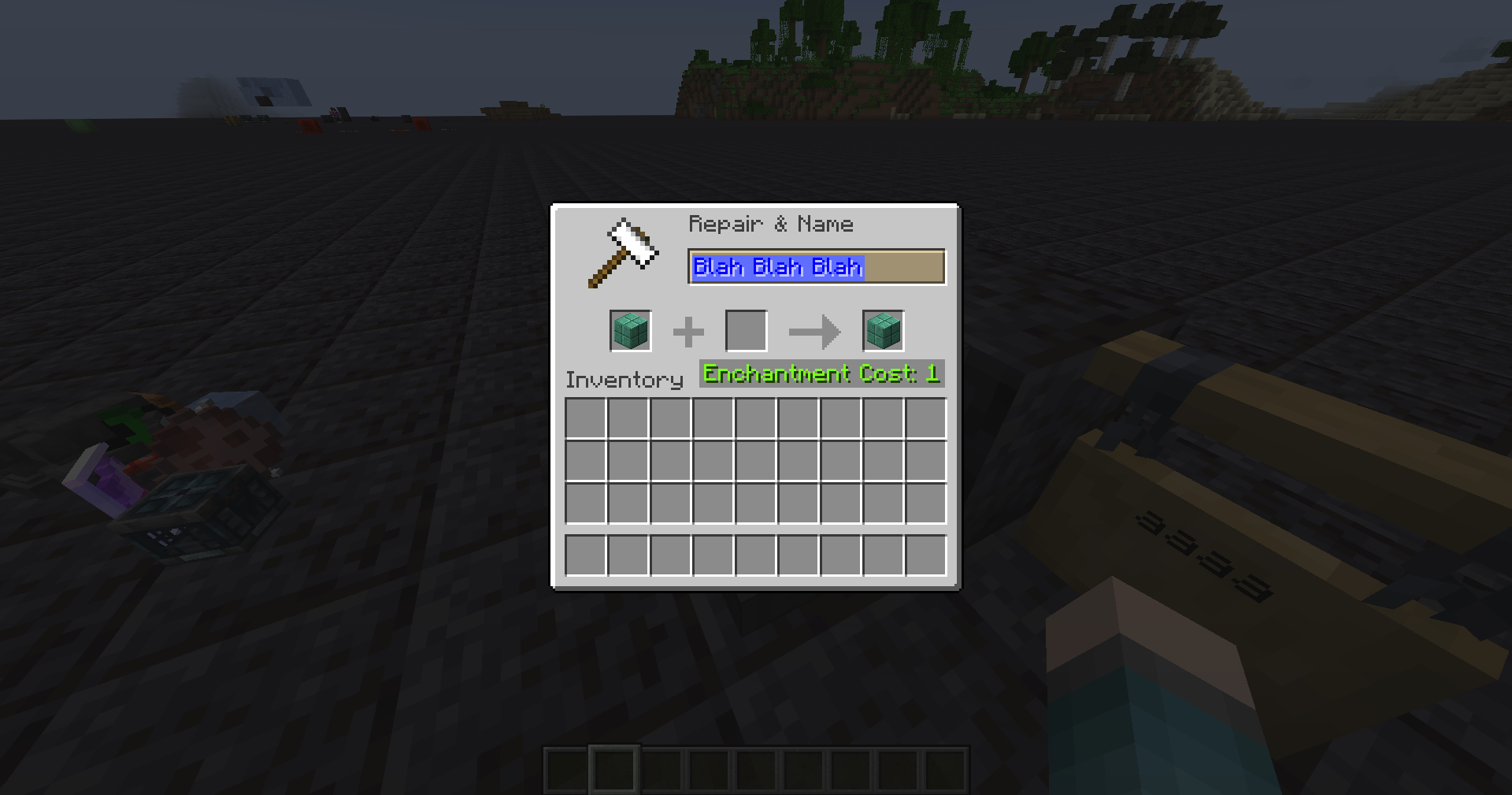 Highlighted text within the anvil and creative inventory interfaces render blue making it difficult to read.