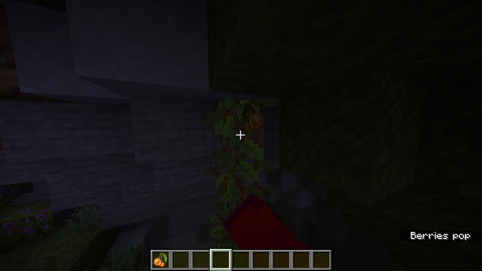 When right clicking on cave vines, glow berries are dropped at its location. This does not appear to be tied to its own loot table - it either reuses the loot table for breaking vines, or is a hardcoded drop.