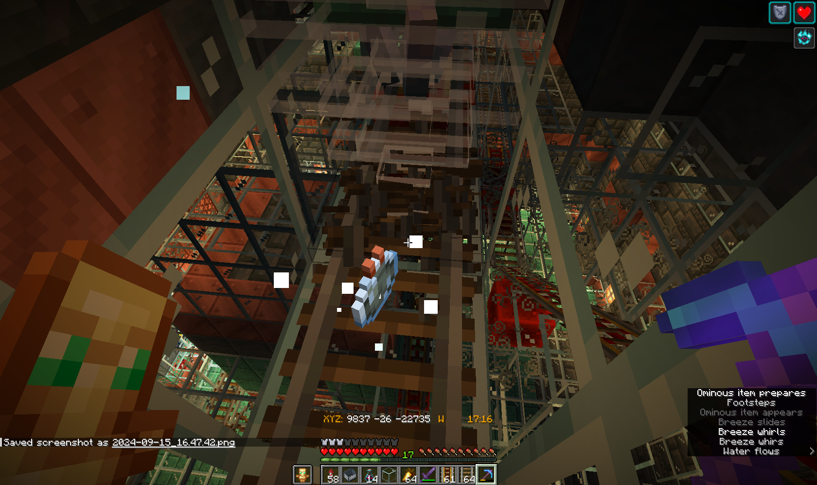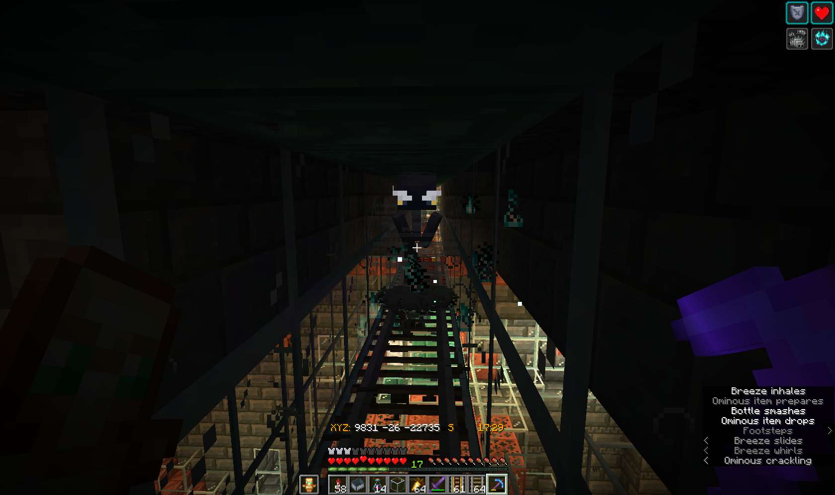 I've attached files of the farm, however...perhaps this is caused OVER TIME....I restarted MC, and have been running it for a few hours..it hasn't reproduced. When i had my game running for a week; drinking bad omen bottles every so often, and I would come back, i would notice breezes on these tracks in side the glass enclosement with me.