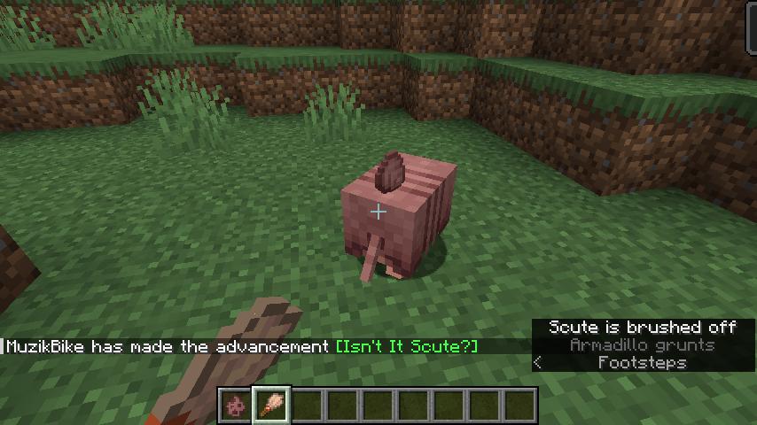 24w37a added a new loot table for armadillos dropping scutes. This loot table is correctly used for when they drop scutes over time, but is not used when brushing manually.