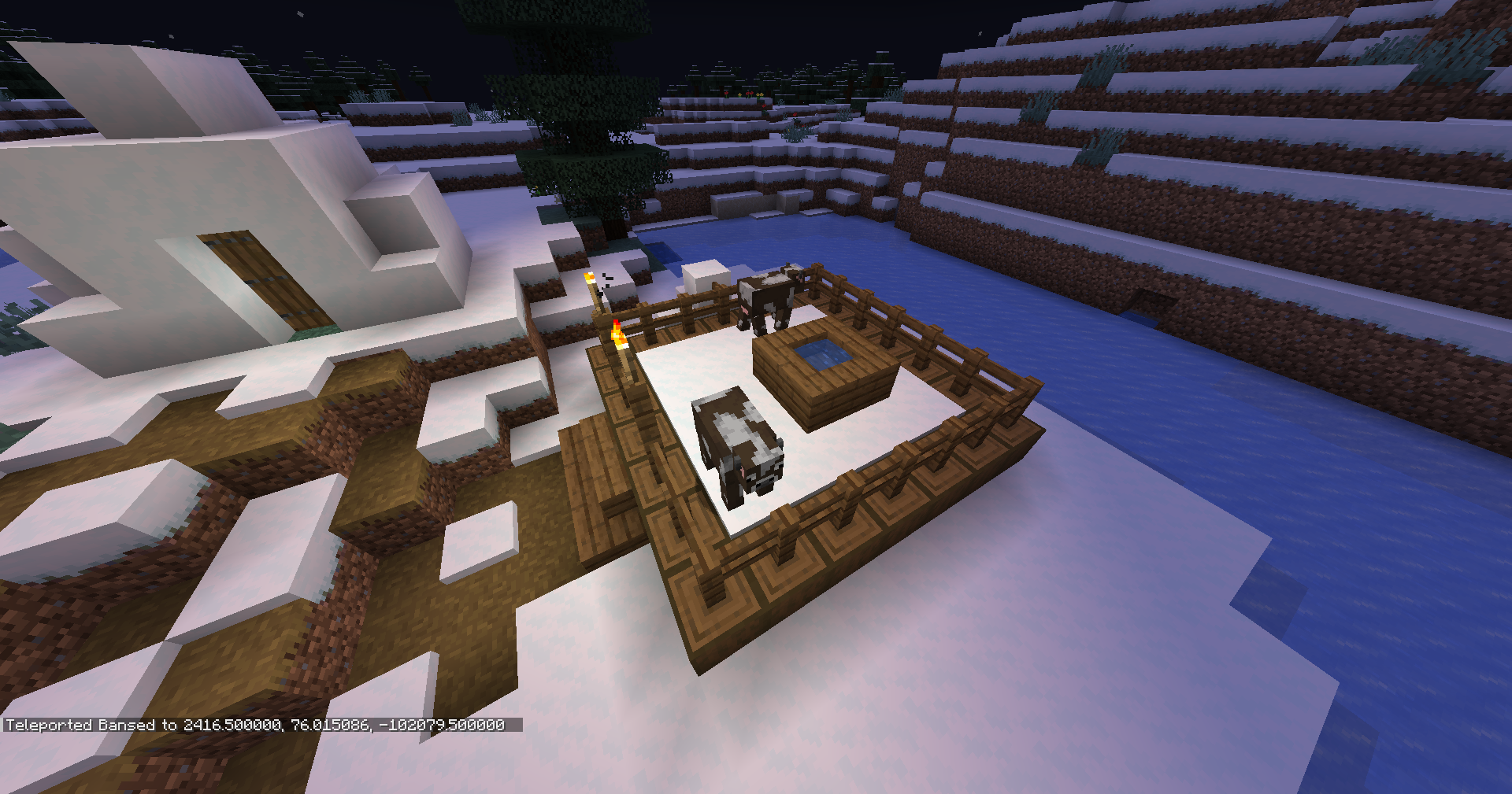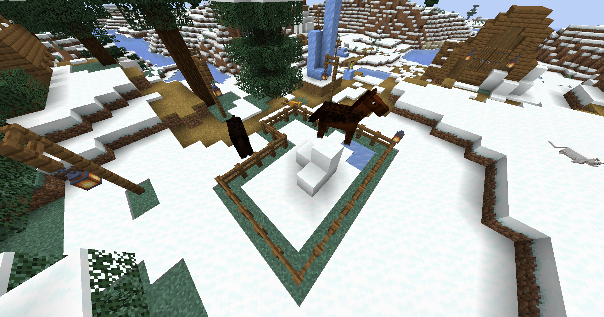 naturally generated snow village animal pens are unable to hold any animal. whoever designed them made them 1 row too small on one side of the animal's drinking pond (the water logged 4 stairs).