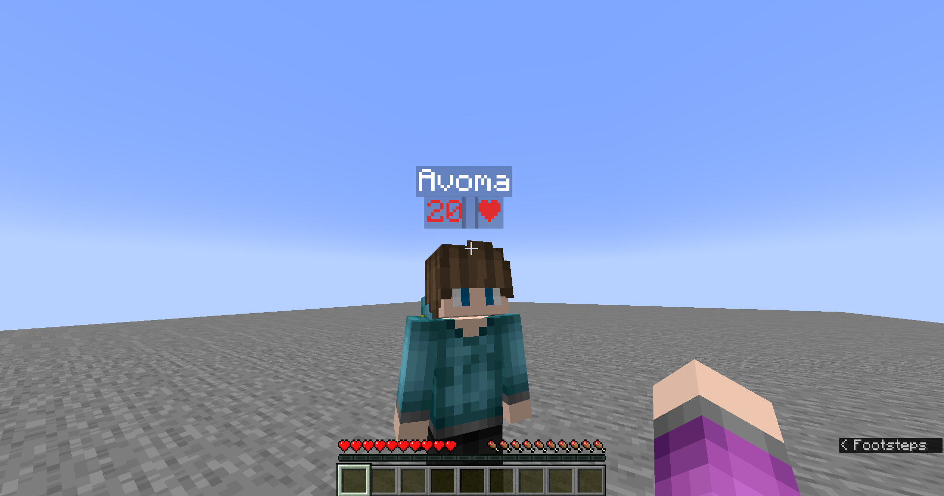 /scoreboard objectives add health health/scoreboard objectives setdisplay below_name health/scoreboard objectives modify health displayname {"text":"❤","color":"#e32d2d"}/scoreboard objectives modify health numberformat styled {"text":"","color":"#e32d2d"}Get a player to load into your world and look below their name closely.